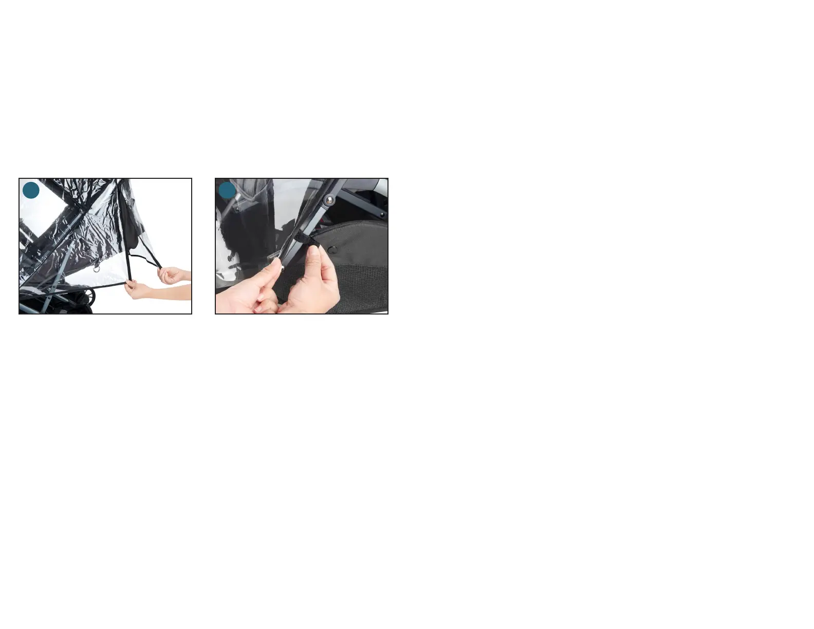 •将防雨罩放在婴儿车上,长翼朝向婴儿车前部。确保前缝位于遮蓬的前缘上方。