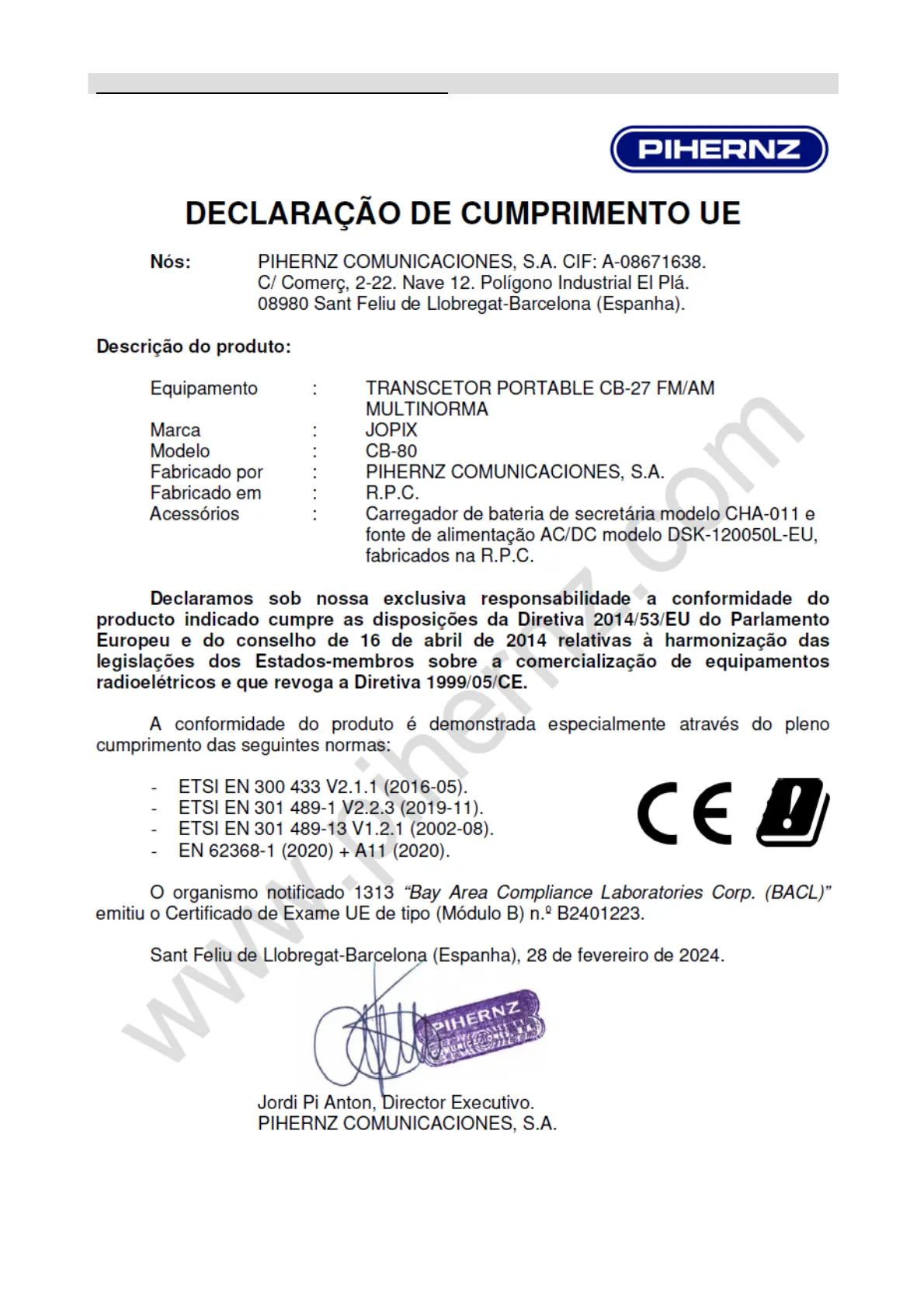 DECLARAÇÃO DE CUMPRIMIENTO UE