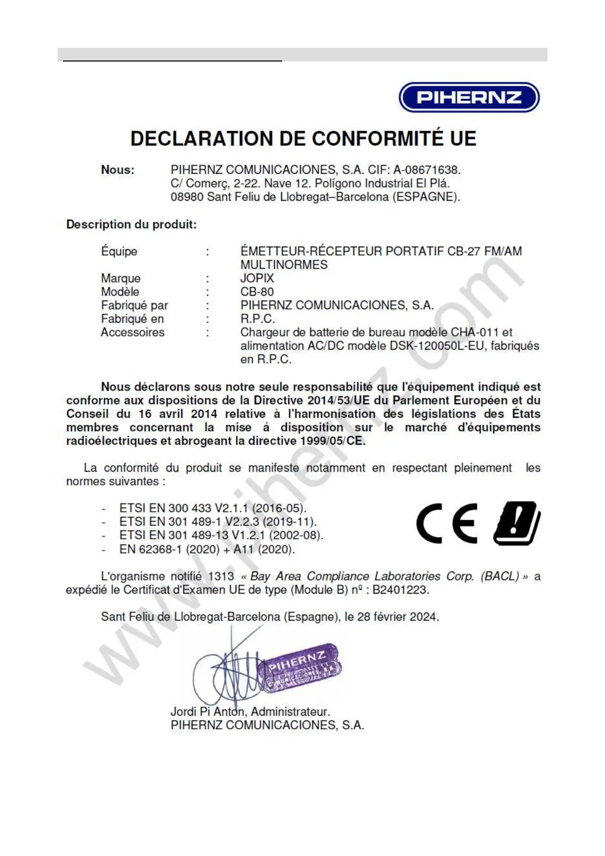 DECLARATION DE CONFORMITÉ UE