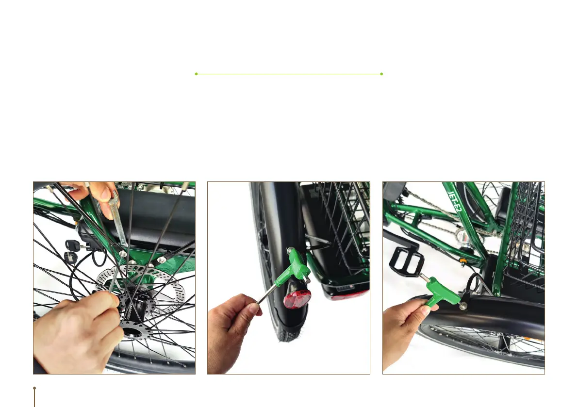 Fit fender brackets to the axle using the 4 Allen key bolts, then the bracket to the fender using the 2 Allen Key bolts.