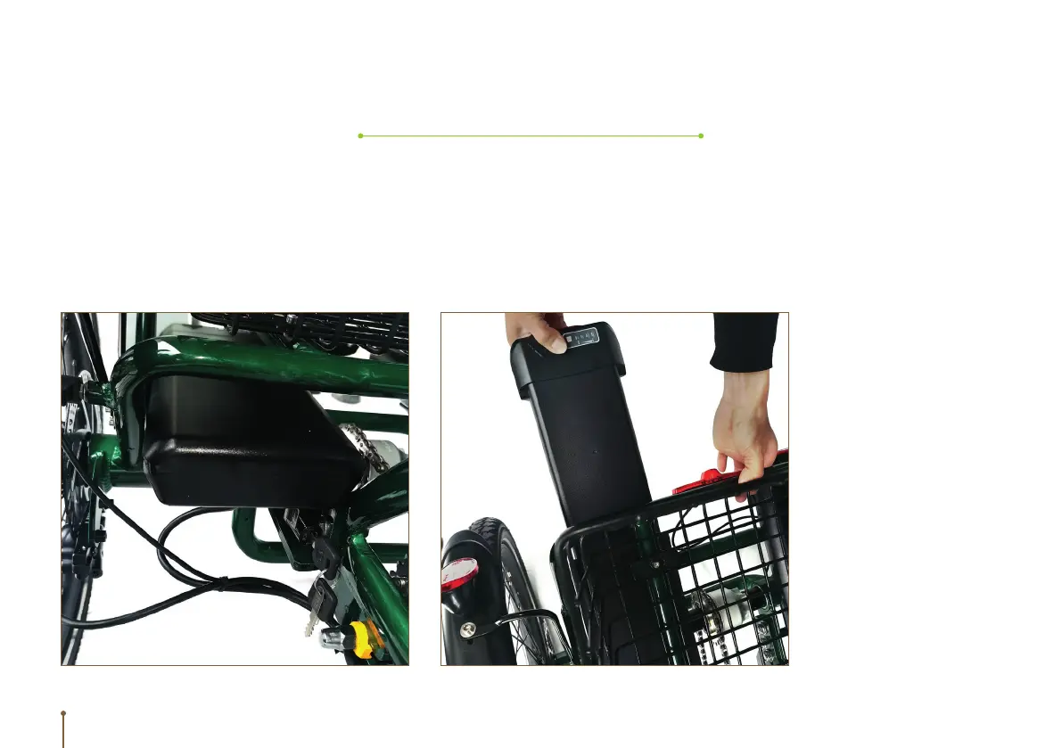towards the back of the trike. Once charged, slide back into position and lock by turning the key 180 degrees