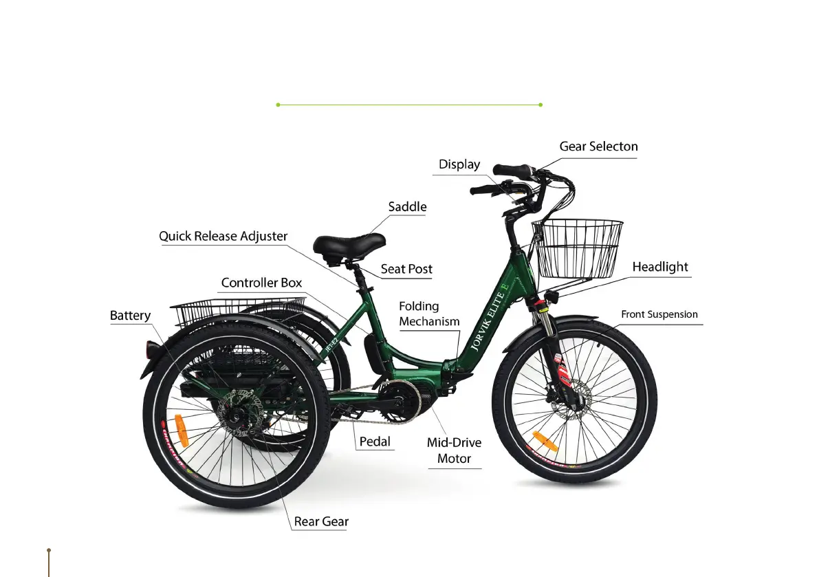 Jorvik JET-E2 Elite Mid-Drive Dual Battery Electric Folding Tricycle