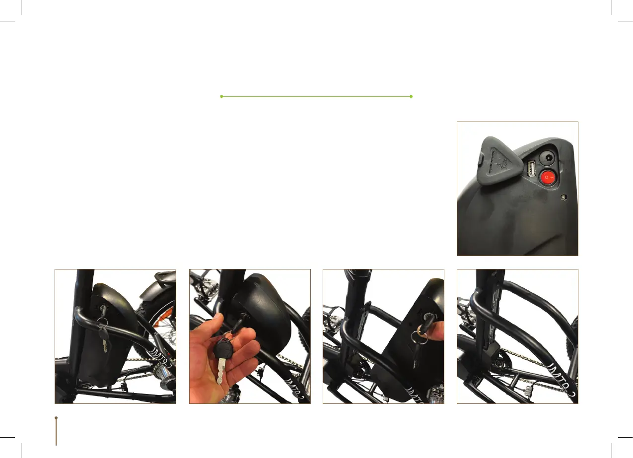 To remove the battery, insert the key, turn the key 180 degrees to the left