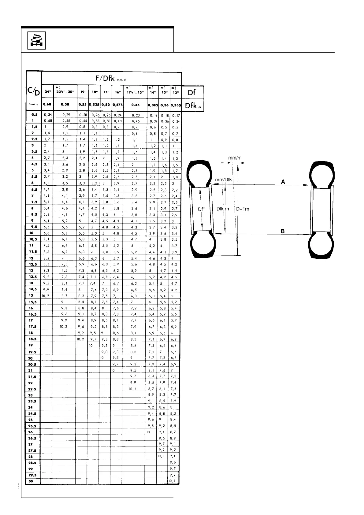 Table mm/m, tolerance in mm per bead of rim