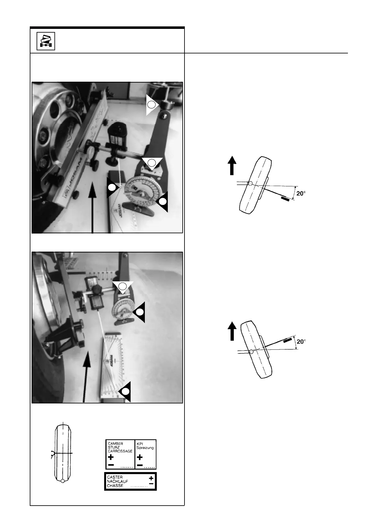 (5) Rotate the right front wheel 20° inward utilizing