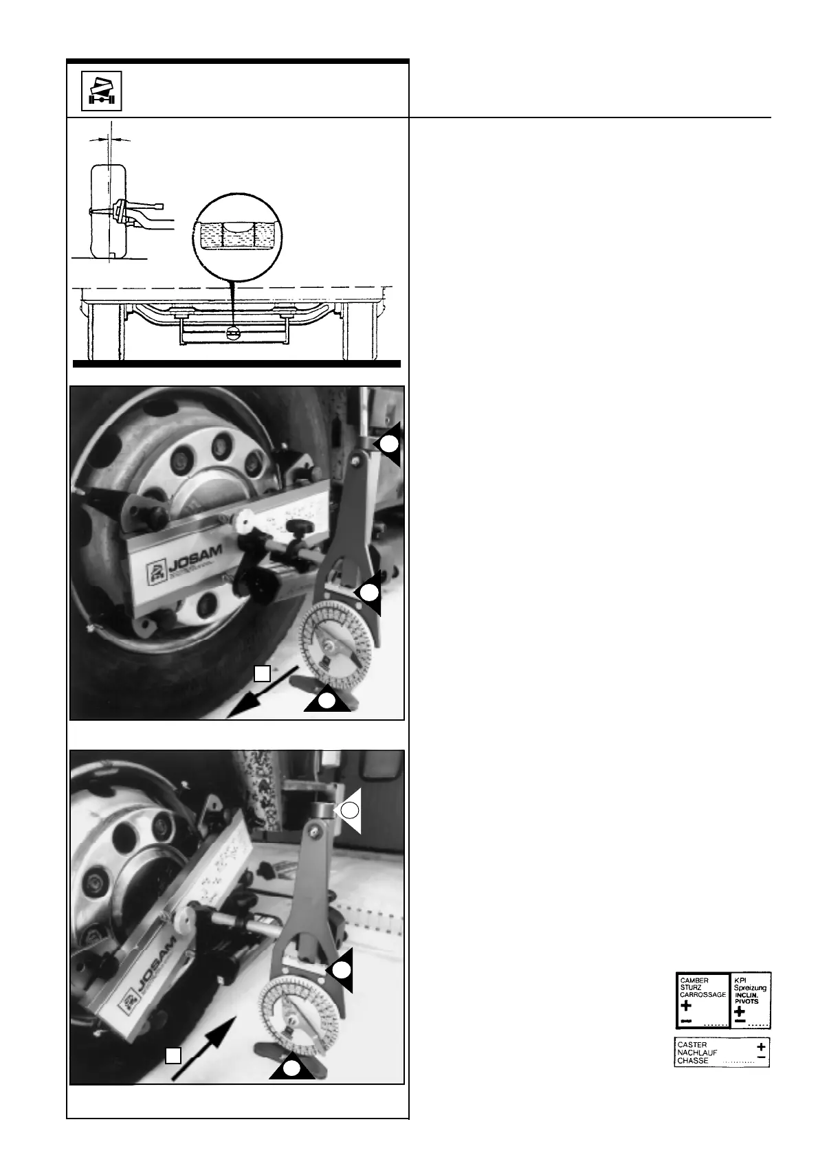 for camber and caster measurements. Move the