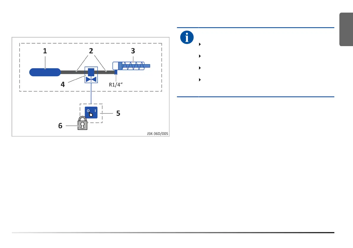 2. Use a 3/2-way valve (4) to ensure the cylinder (3) functions