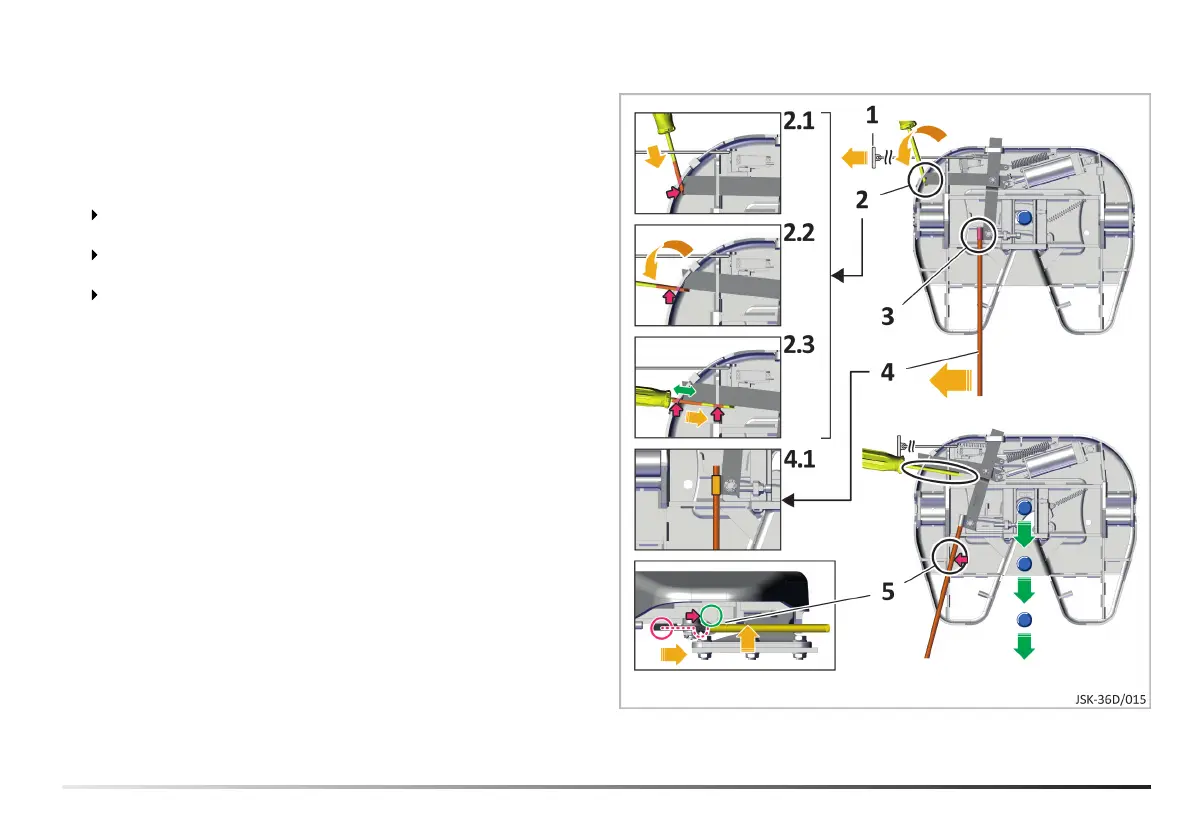 5. Carefully release the tool* in the hook (5), to keep the bar in
