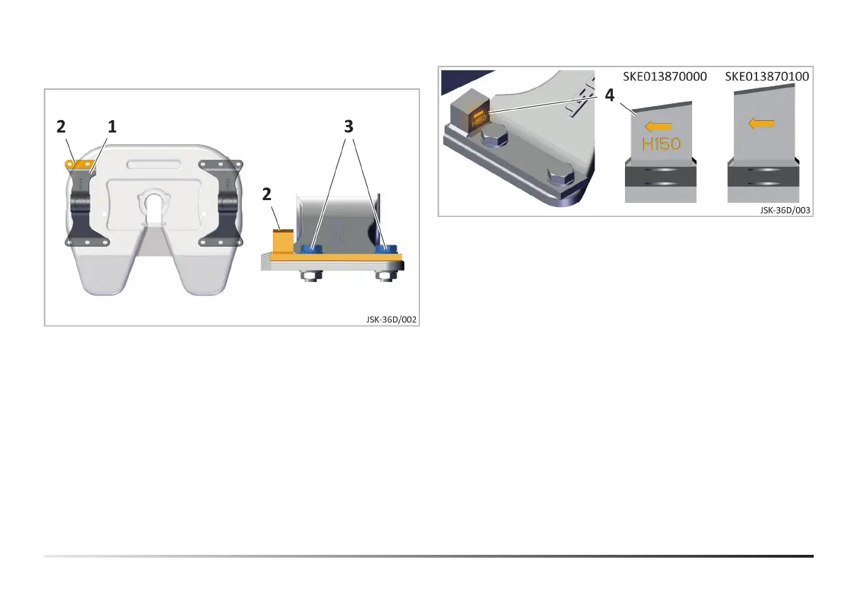 1. Mount the tilt stop (2) on the front left-hand side, on the left