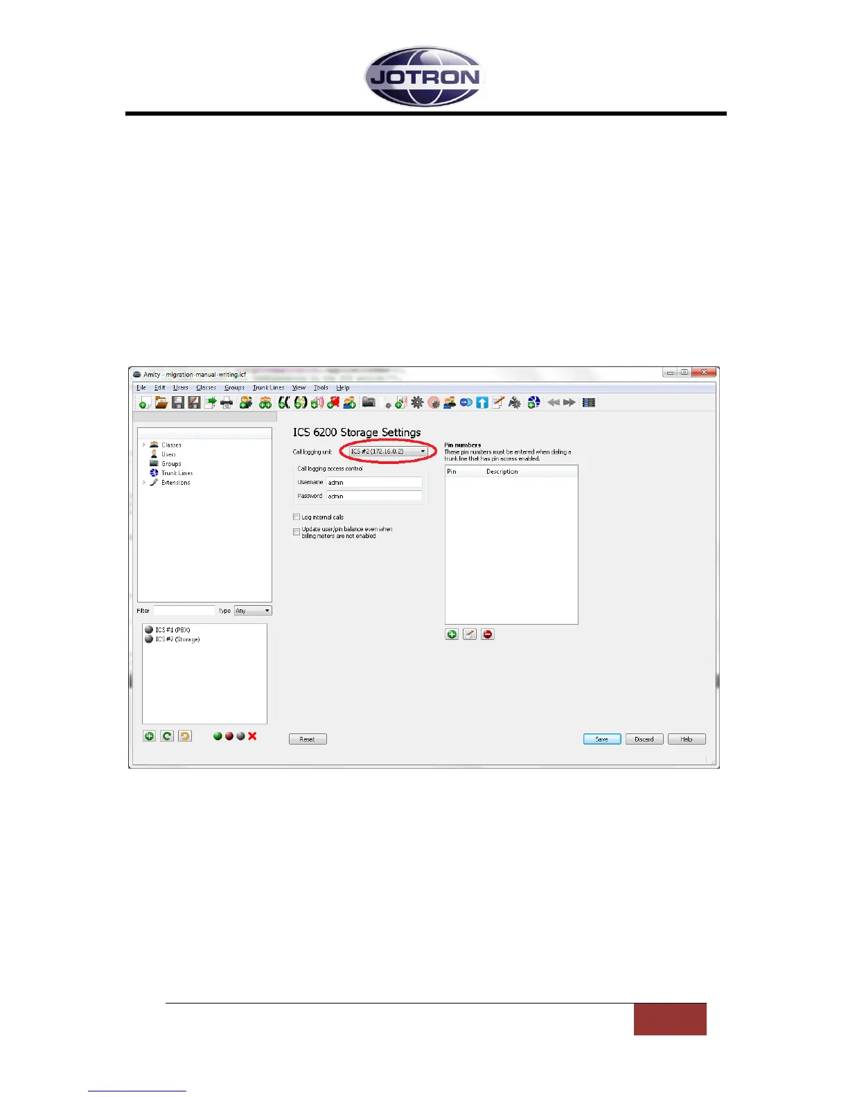 be found in the “Call logging unit” dropdown box as seen on the picture below.