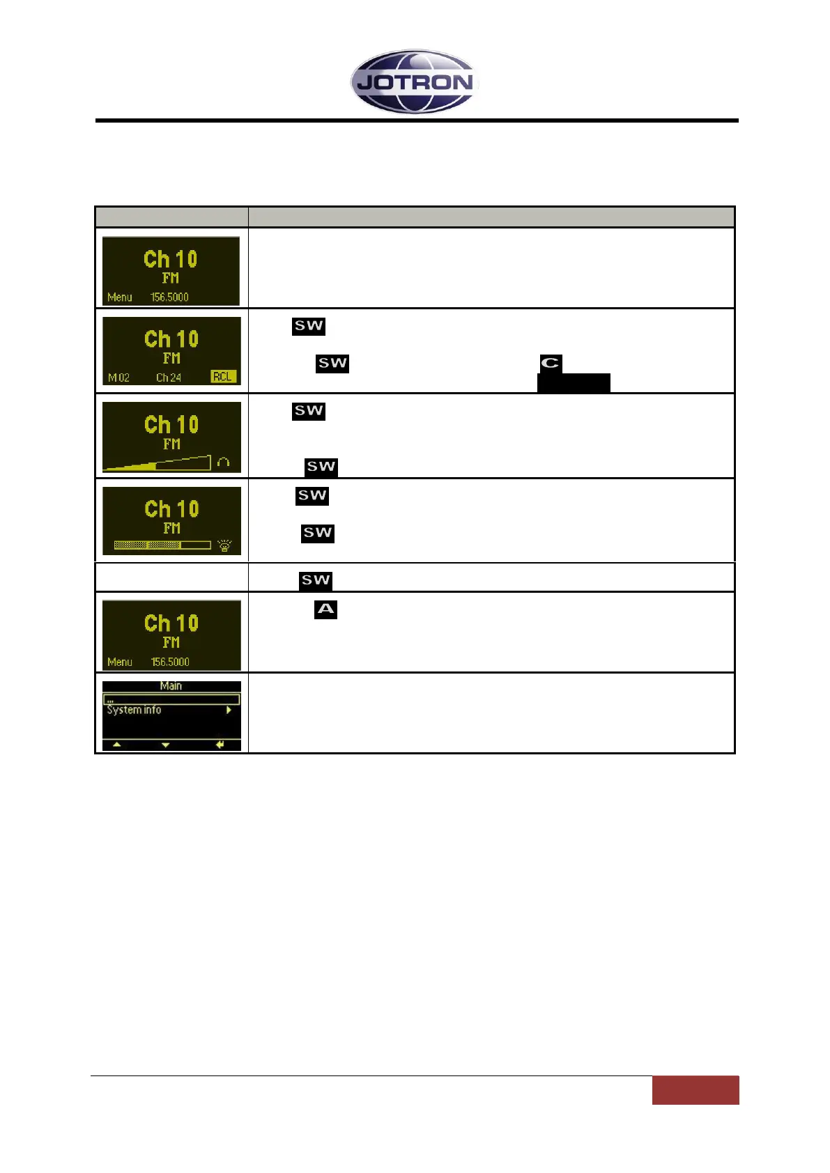 If no channel is stored, the display will show: CH: No channels