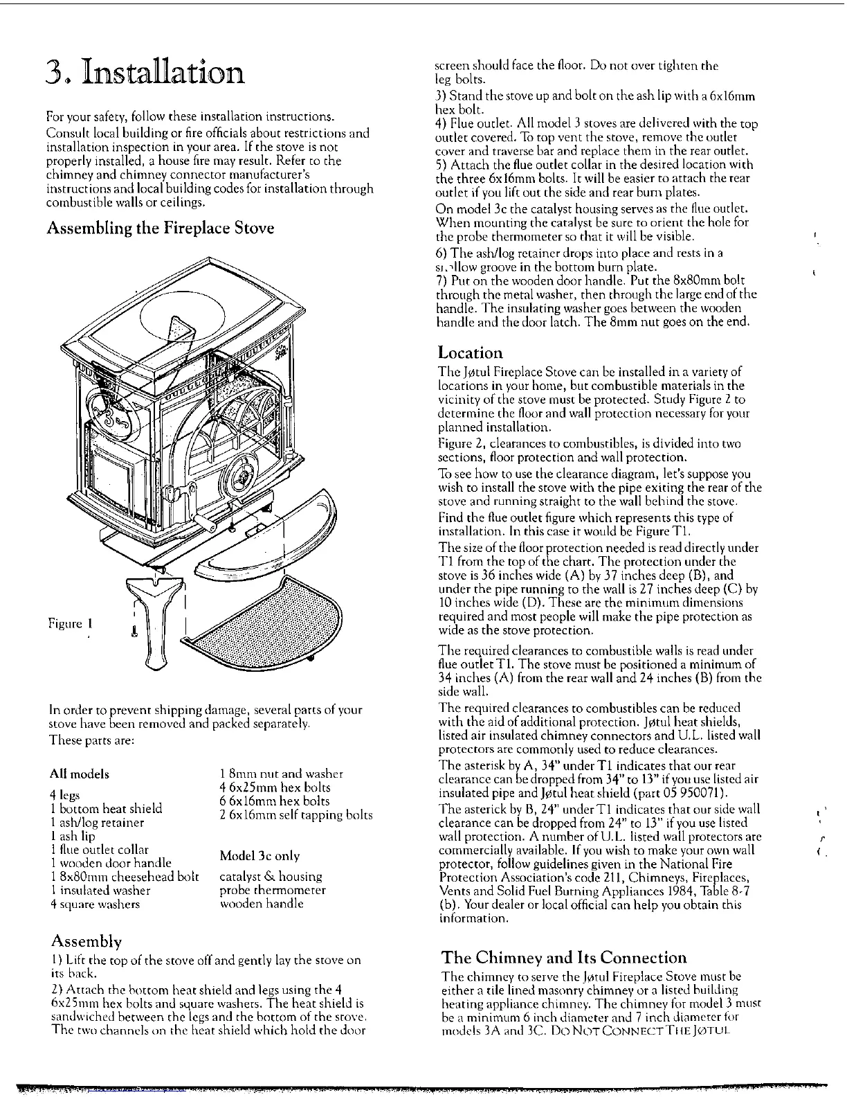 Jøtul 3 - Installation; Assembling the Fireplace Stove; Location; The Chimney and Its Connection