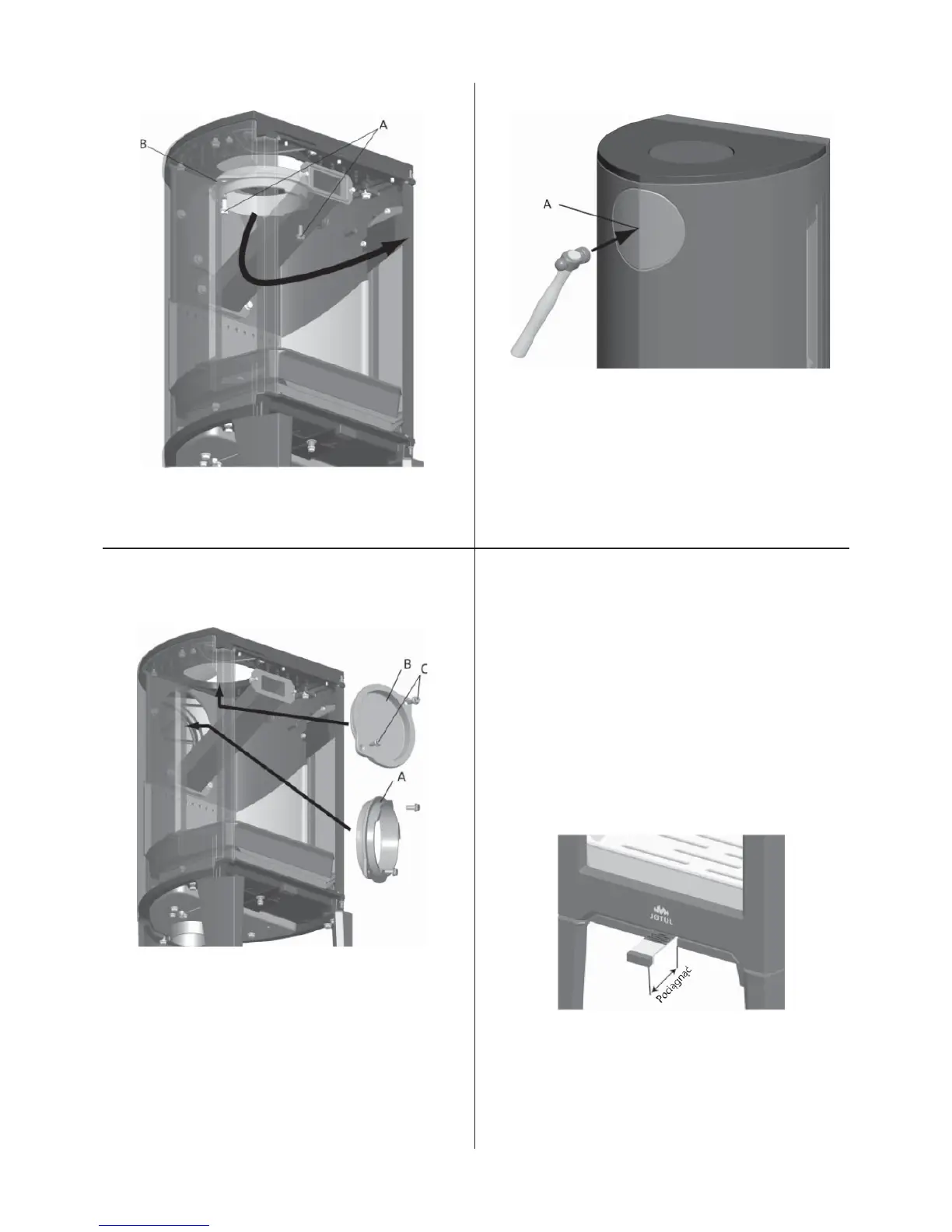 10. Zamontuj pokrywę wylotu spalin (Rys. 6a B) w miejscu, w