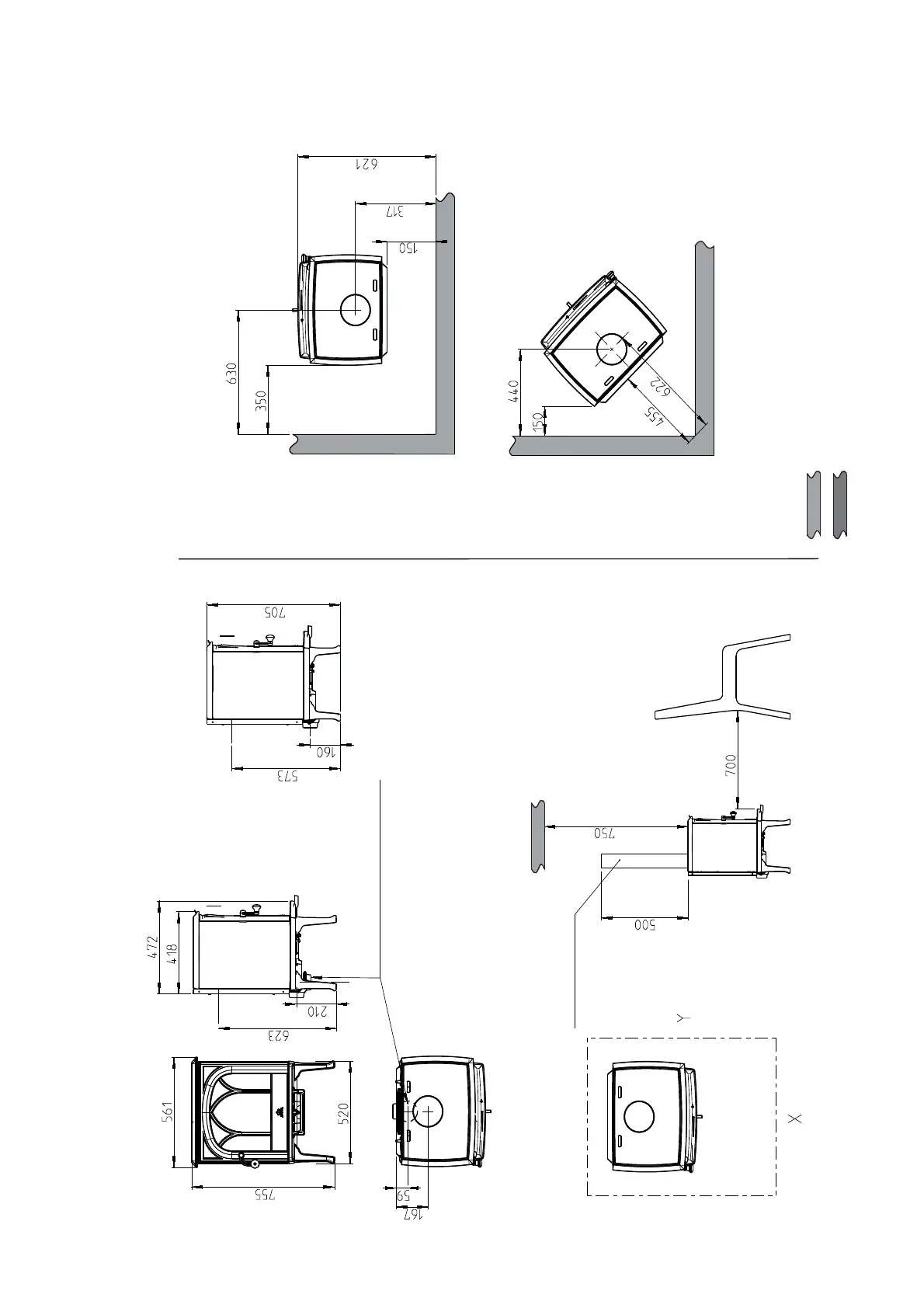 Min. distance to combustible wall