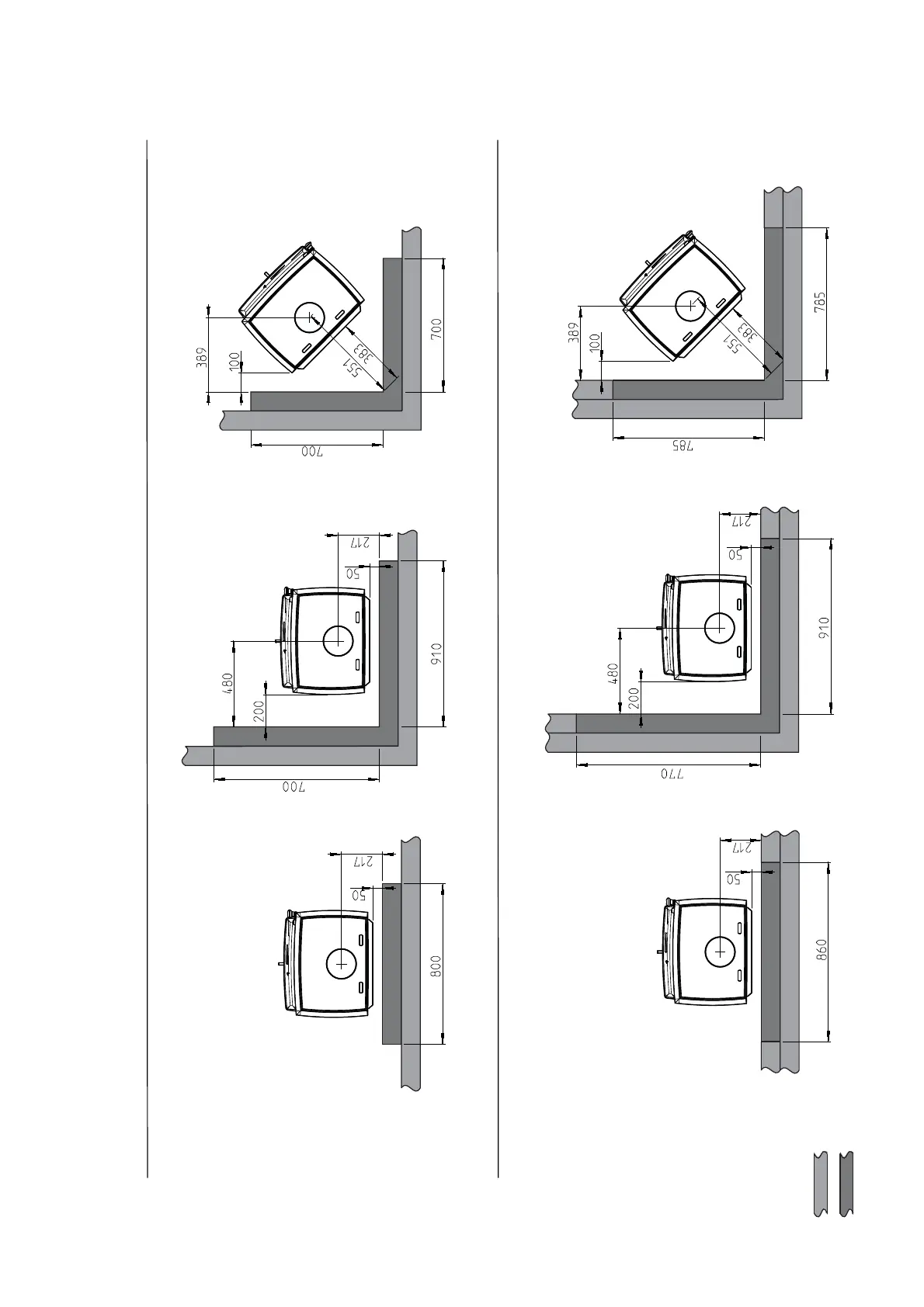 Min. distance to combustible wall protected by approved rewall Semi isolated ue pipe/Cover ue pipe all the way down towards the product
