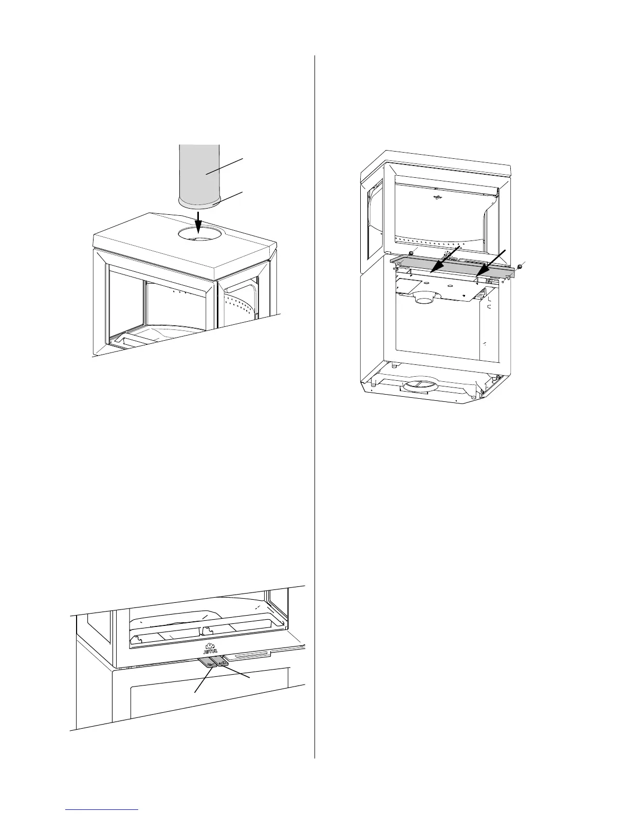 1. Leid de kachelpijp (A) door de bovenplaat en plaats