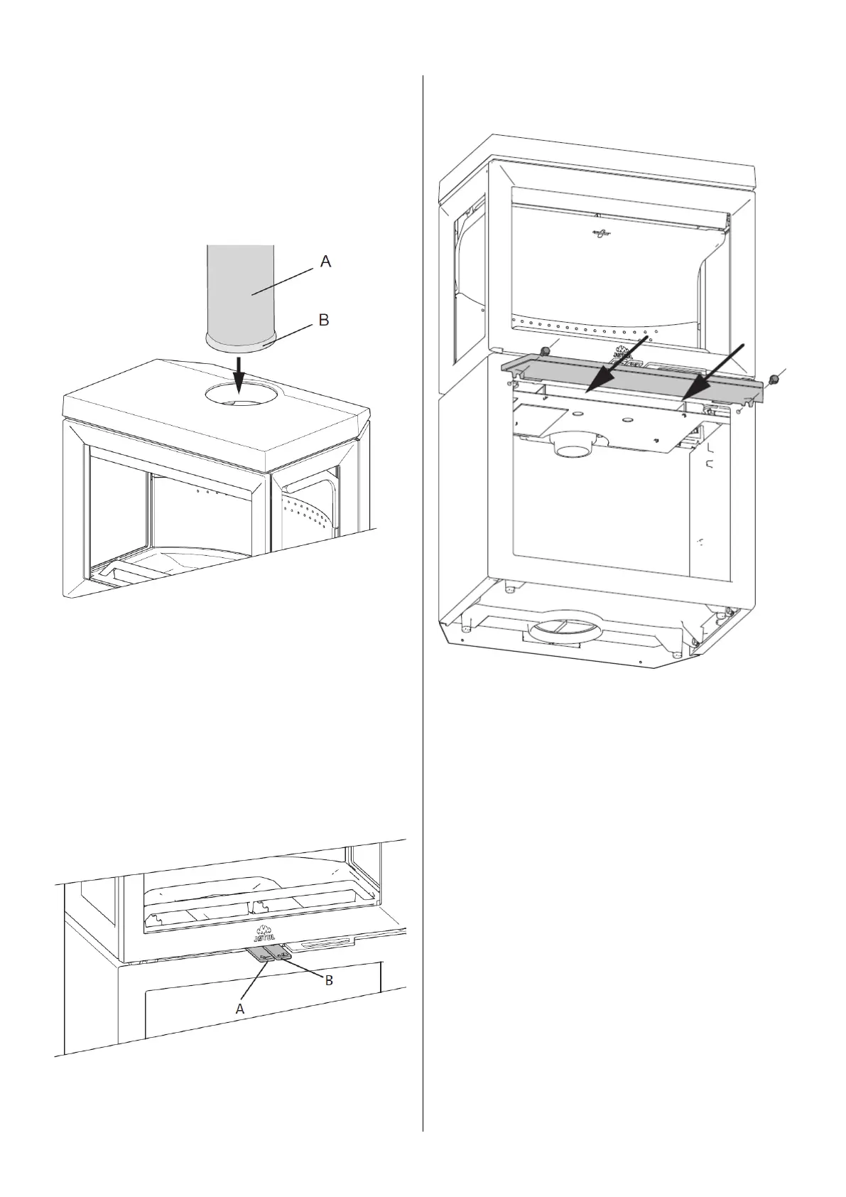1) Thread the flue pipe (A) through the top plate and place it