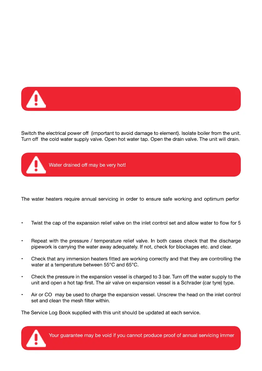 Servicing should only be carried out by competent installers and any spare parts used must be