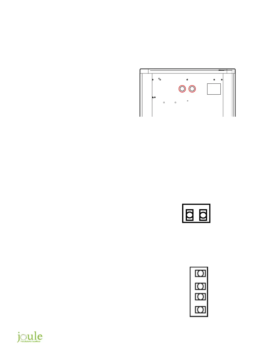 4mm2 fly lead, fed through the unit’s cable gland, is supplied prewired to these terminals by Joule.