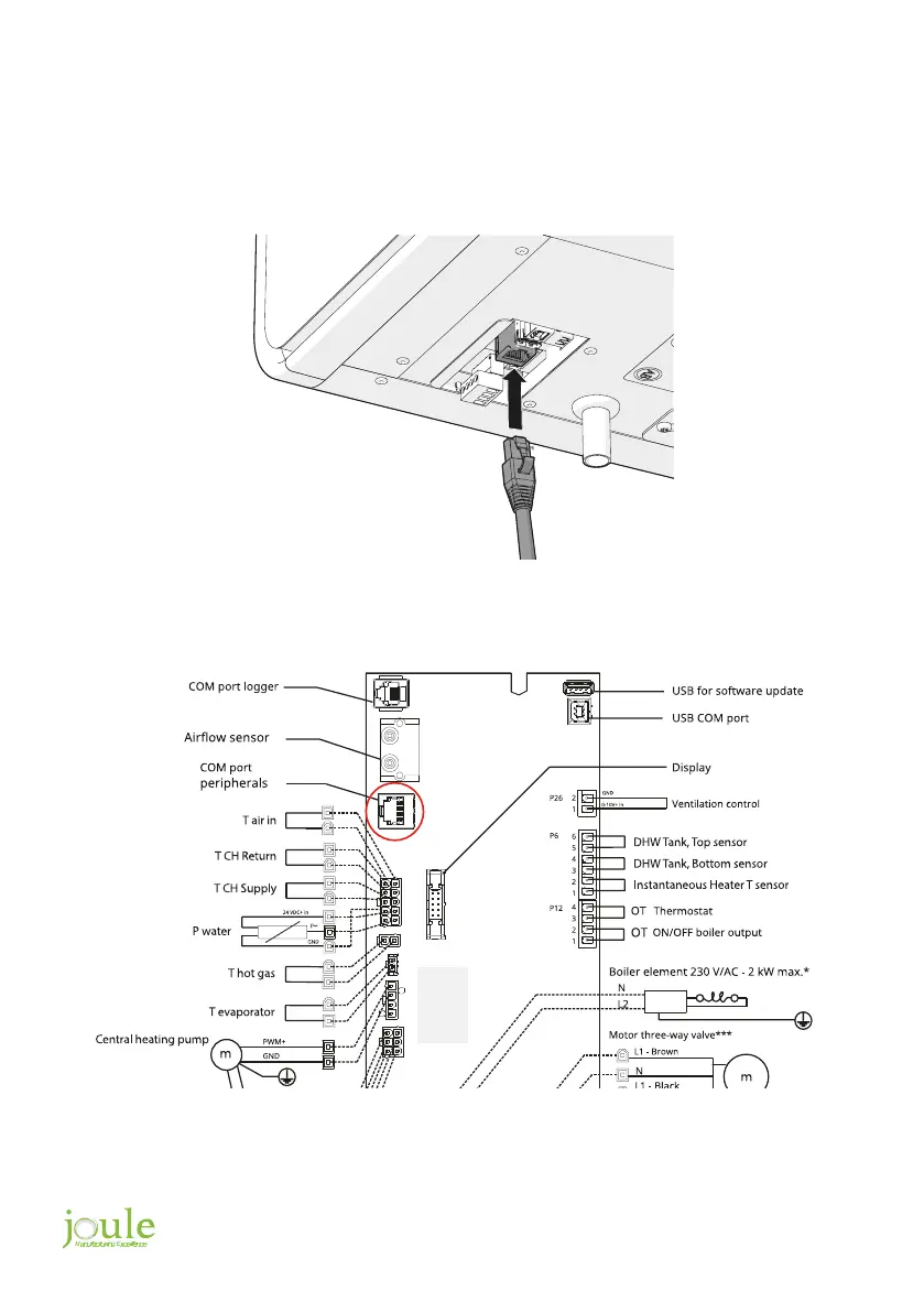 UTP cable is directly plugged into the data port on the bottom side of the Green Comfort Unit.