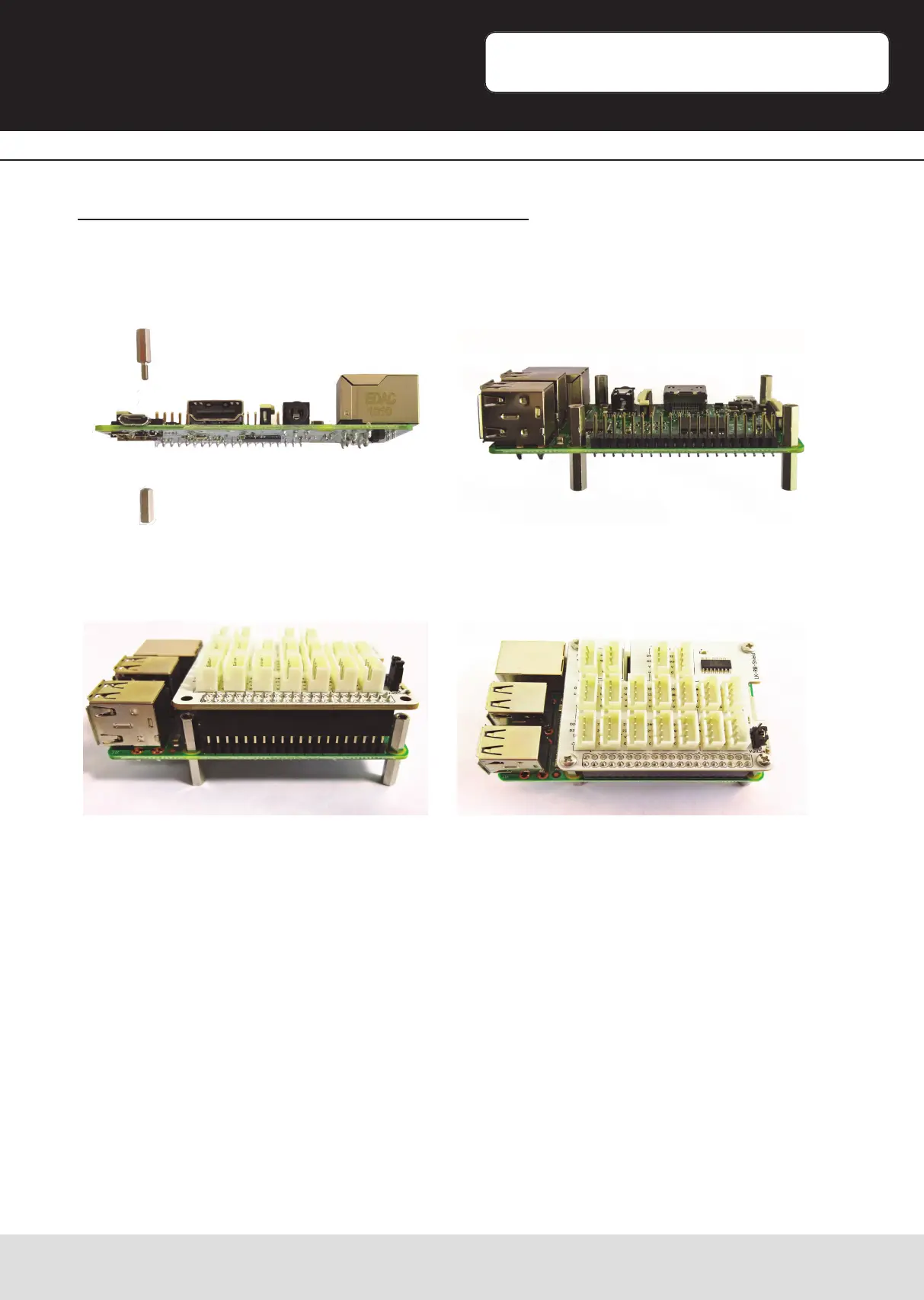 To mount the Raspberry Pi, take the spacers [J] rst. Sck them through the four yellow