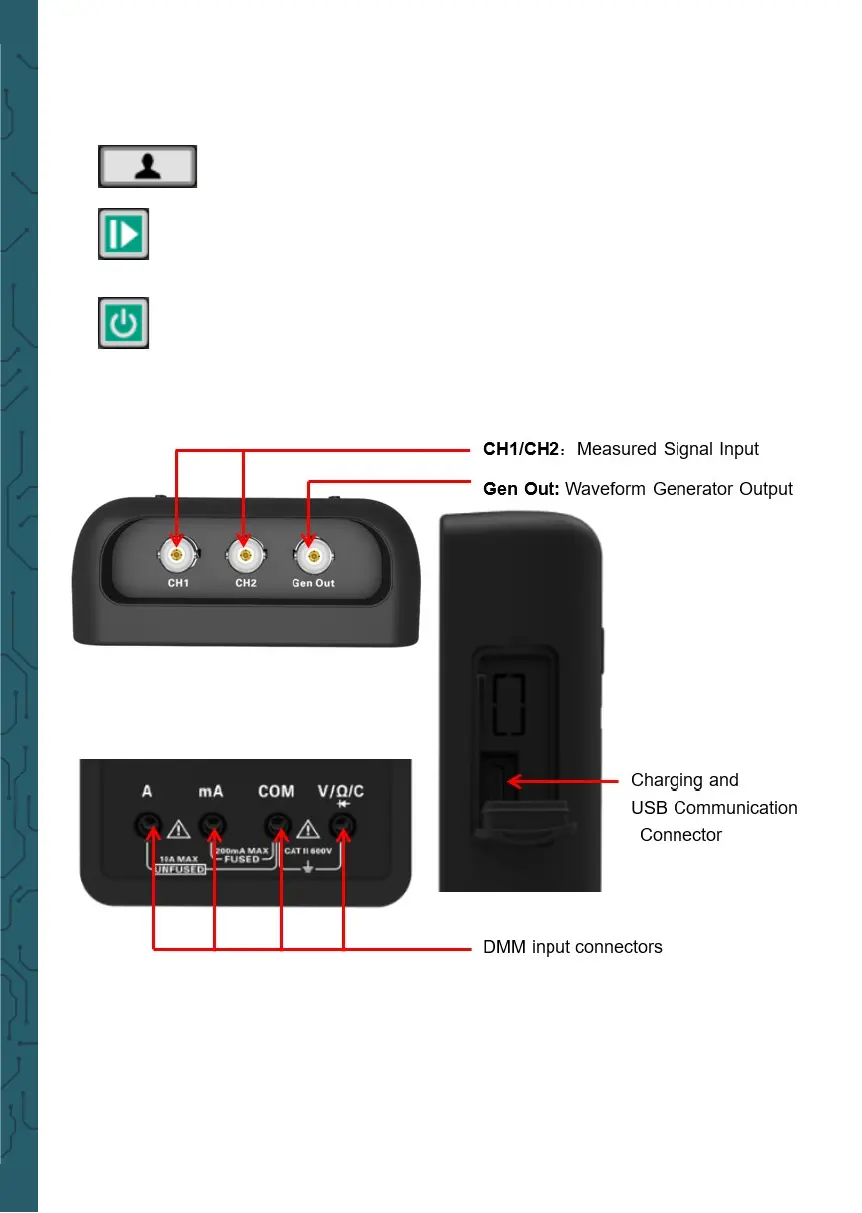 Gen Out: The Gen Out terminal of the oscilloscope without signal genera-