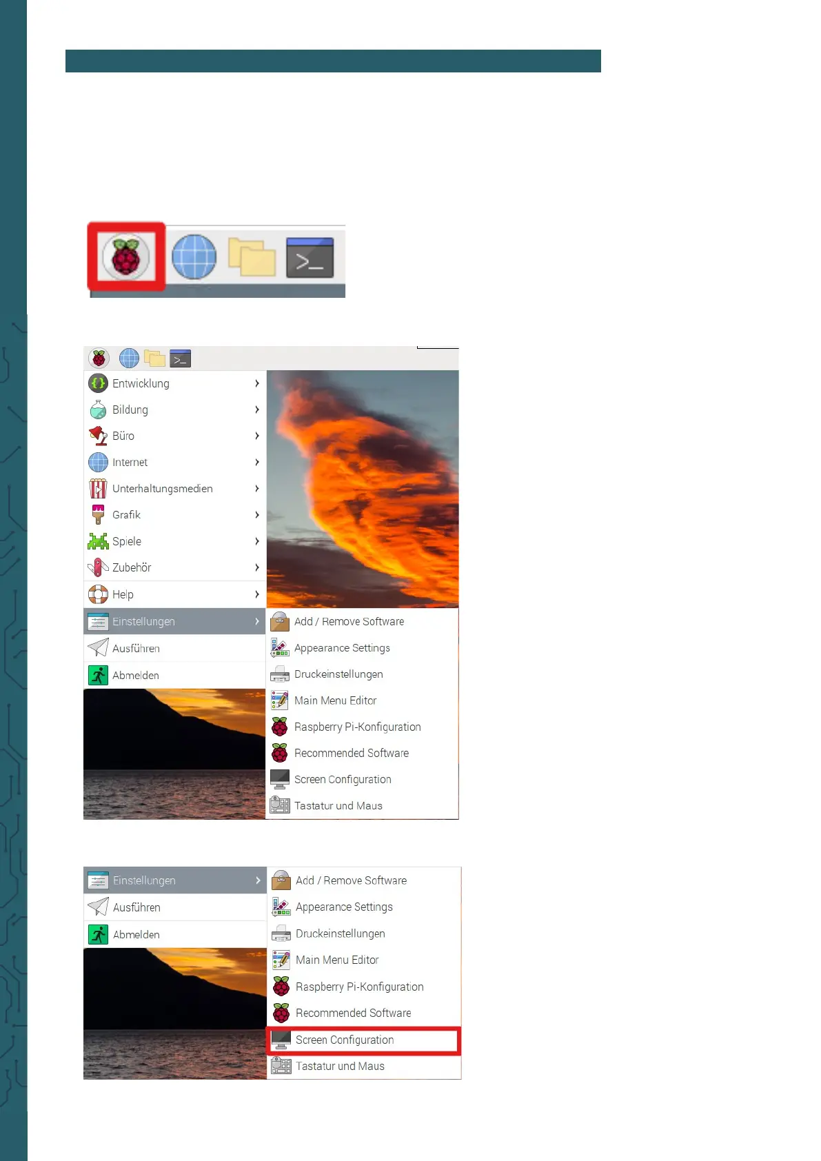3. Open the screen configuration.