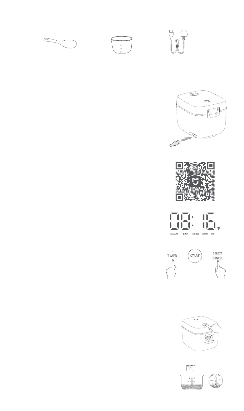 以煮2杯泰国香米为例,加水至相应刻度2。加水时不能超过相应水位