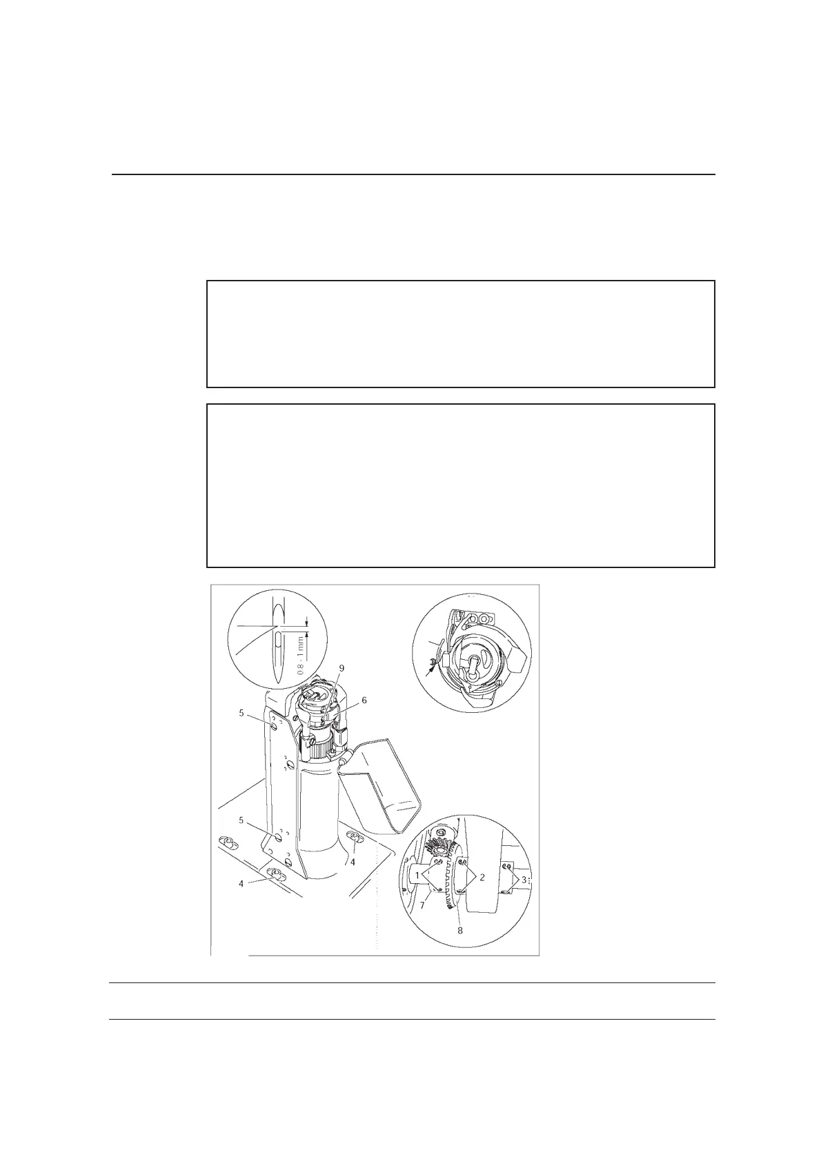 1. the hook point must be at needle centre with a hook-to-needle clearance