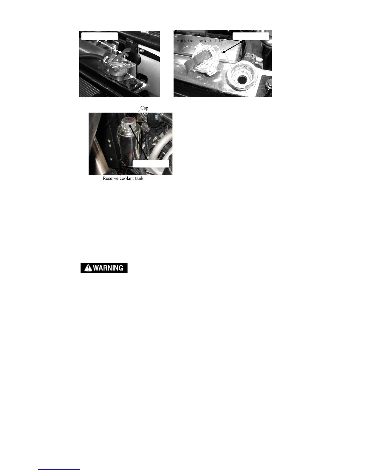 d. Pour fresh coolant to filler neck. Start the engine at idle.