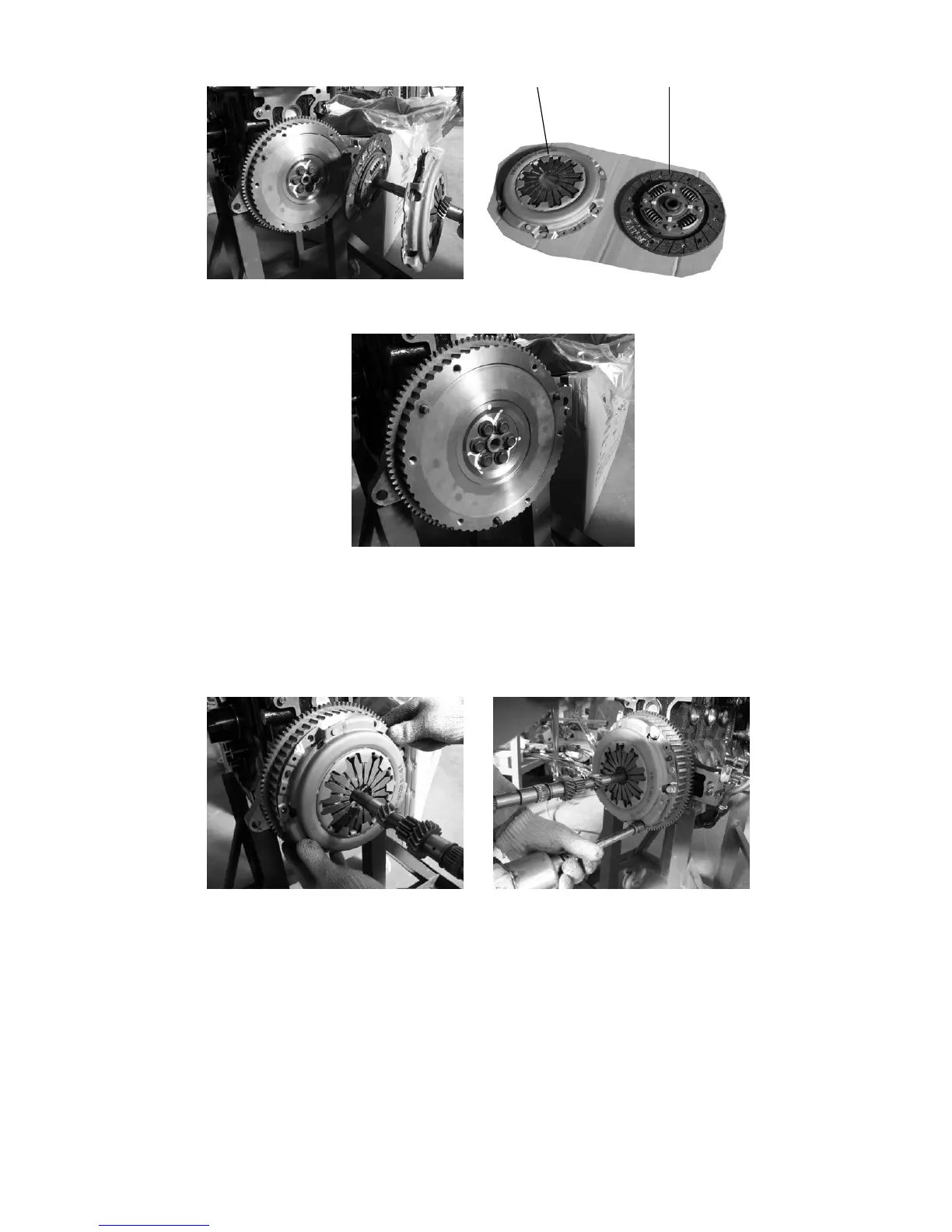 5. Insert a spline-shaft into the hole of the Clutch assy, fix the six bolts on the Clutch