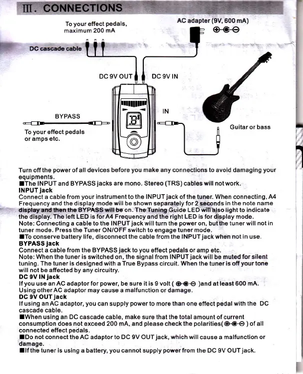 tuner mode. Press the Tuner ON/OFF switch to engage tuner mode.