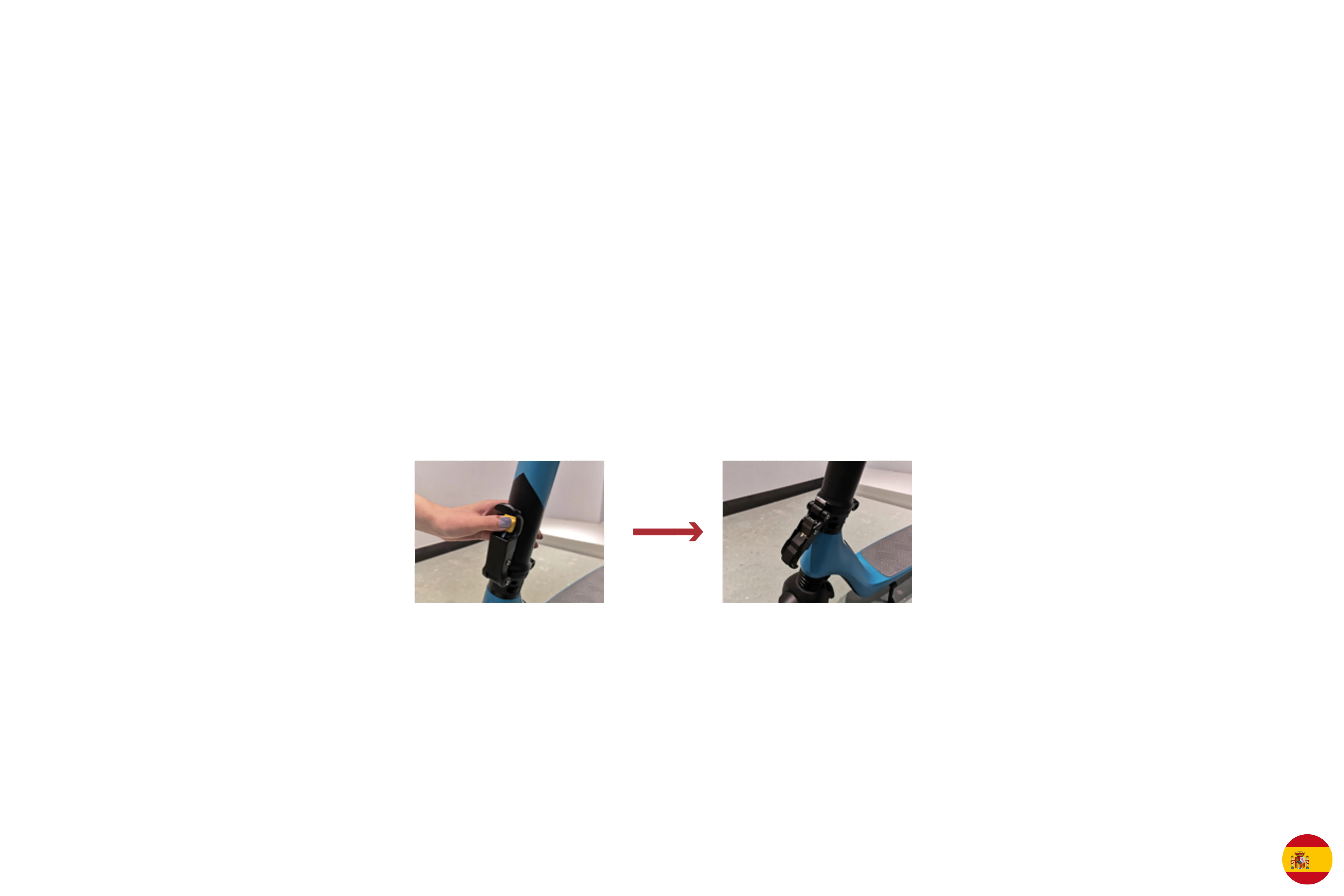 Paso 1: Presionar el pasador de seguridad del cierre y desplegar la palanca del manillar