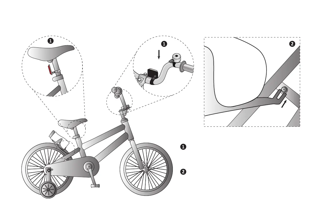 ATTACH THE REFECTORS BELL AND WATER BOTTLE