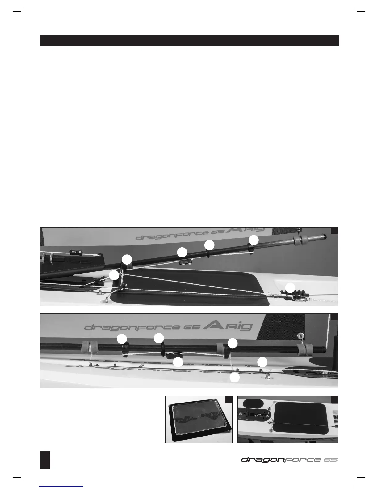 3 Cut an 700mm length of Dyneema to form the Jibsheet. Tie a loop in one end and clip it in to the Winch Line Clip(A), run it forward