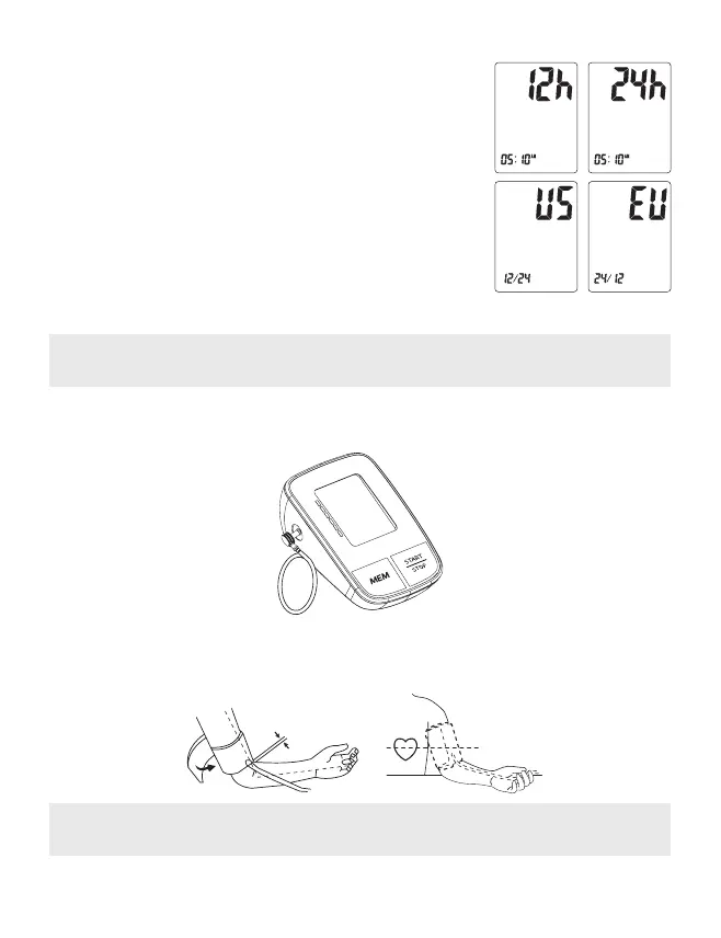 3. Fasten cuff about 1–2cm (0.4–0.8’’) above the elbow joint. For best results apply cuff