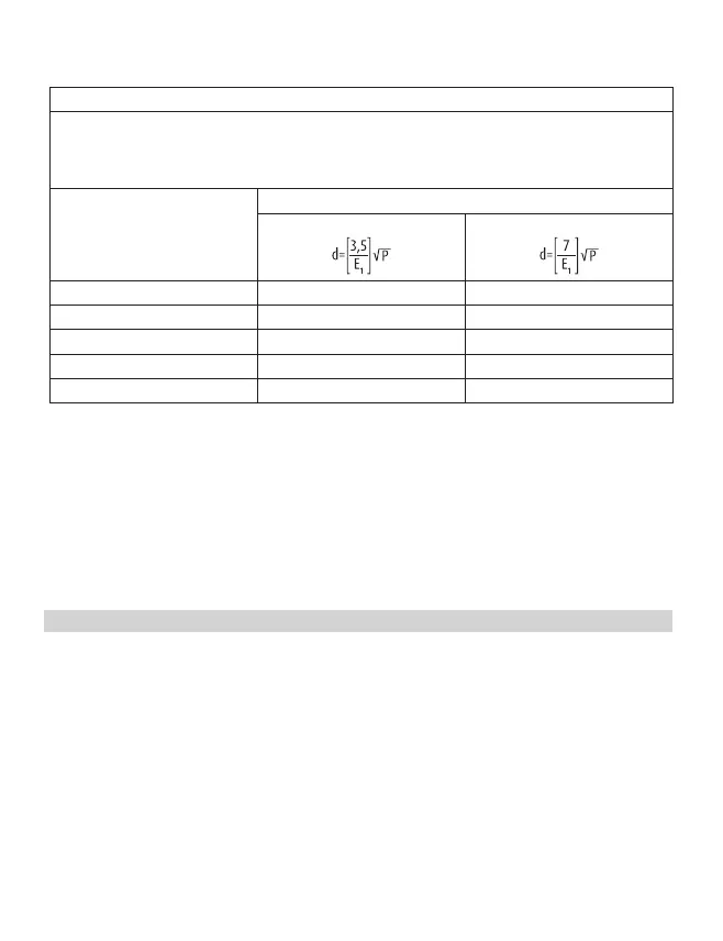 separation distance d in metres (m) can be estimated using the equation applicable to