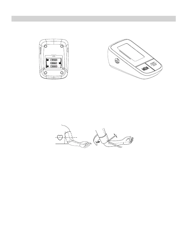 5. Apply cuff to your left arm and keep level with your heart. Bottom of cuff should be