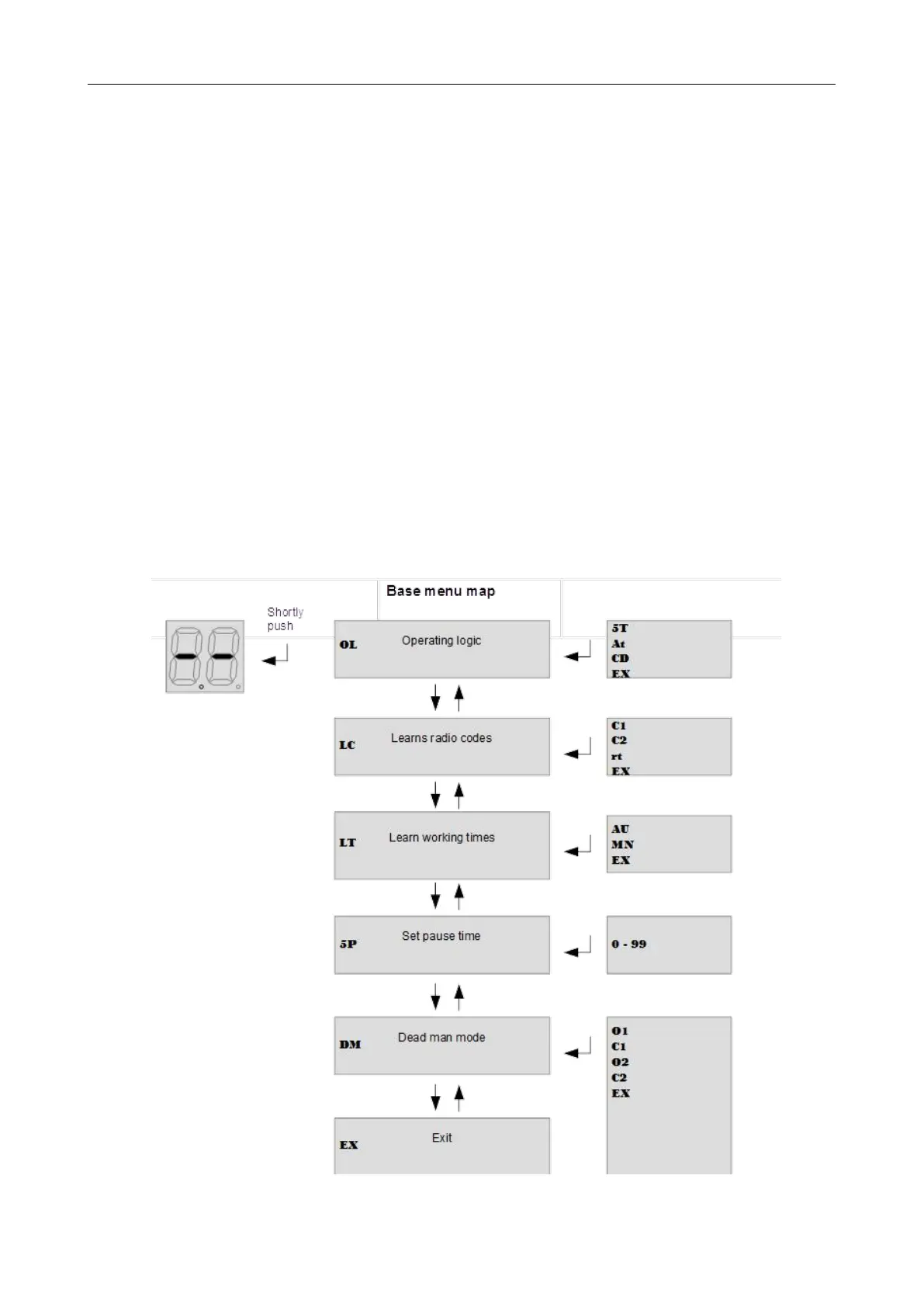 After 2 minutes without actions, the control unit exits itself from this menu.