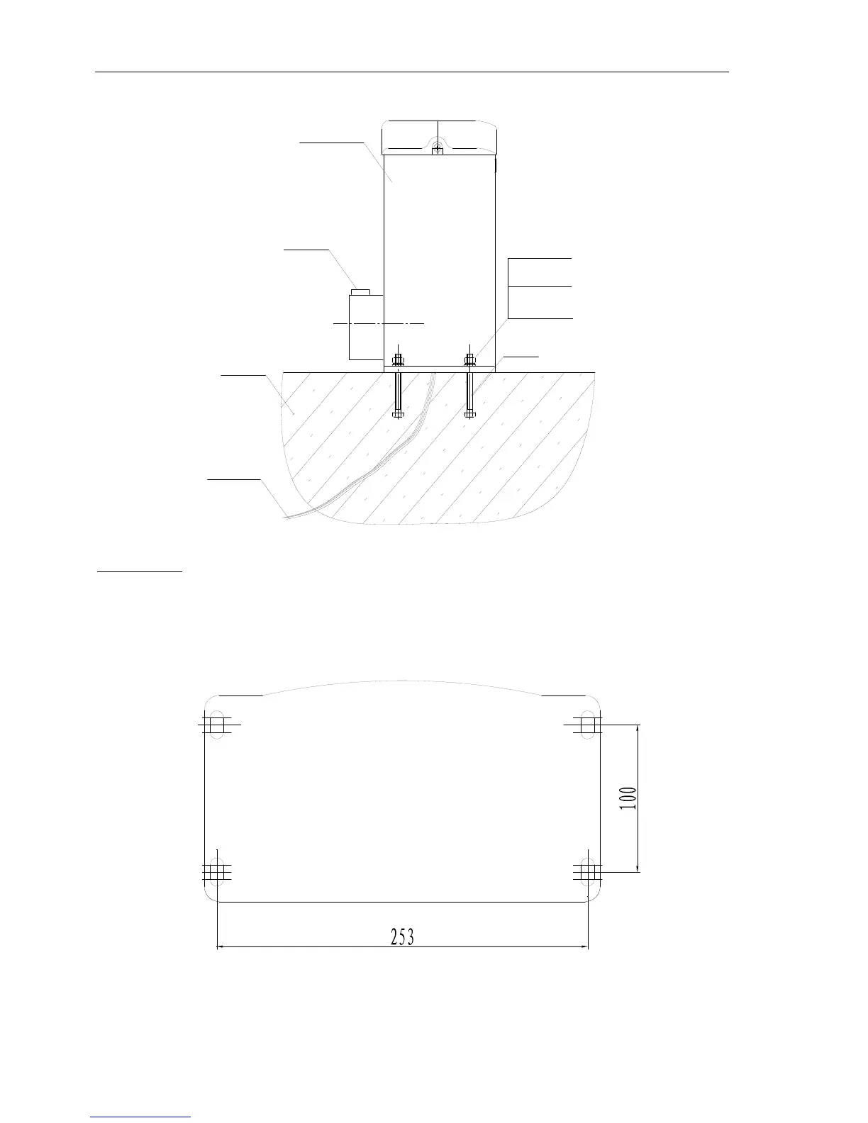 After the concrete has hardened, mount the gate operator base to the concrete pad. Verify that the base