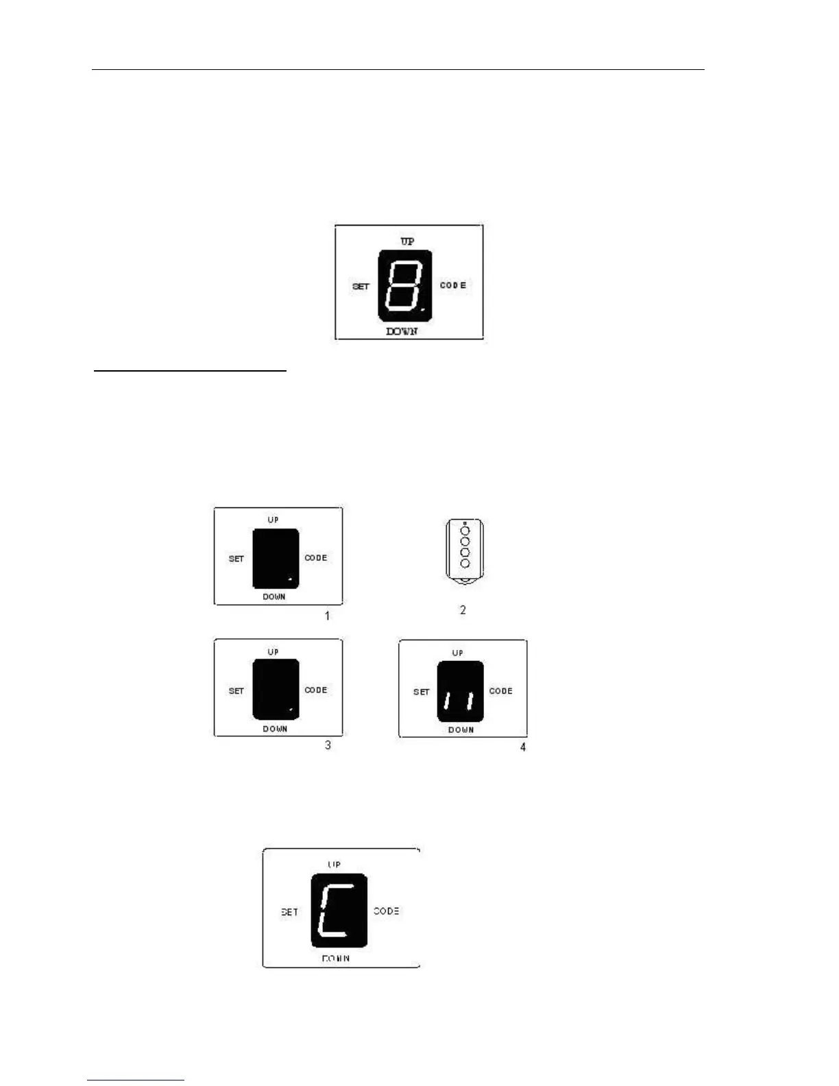 Press and hold CODE until ’C’ flashes on the LED display. This indicates that all the transmitters have