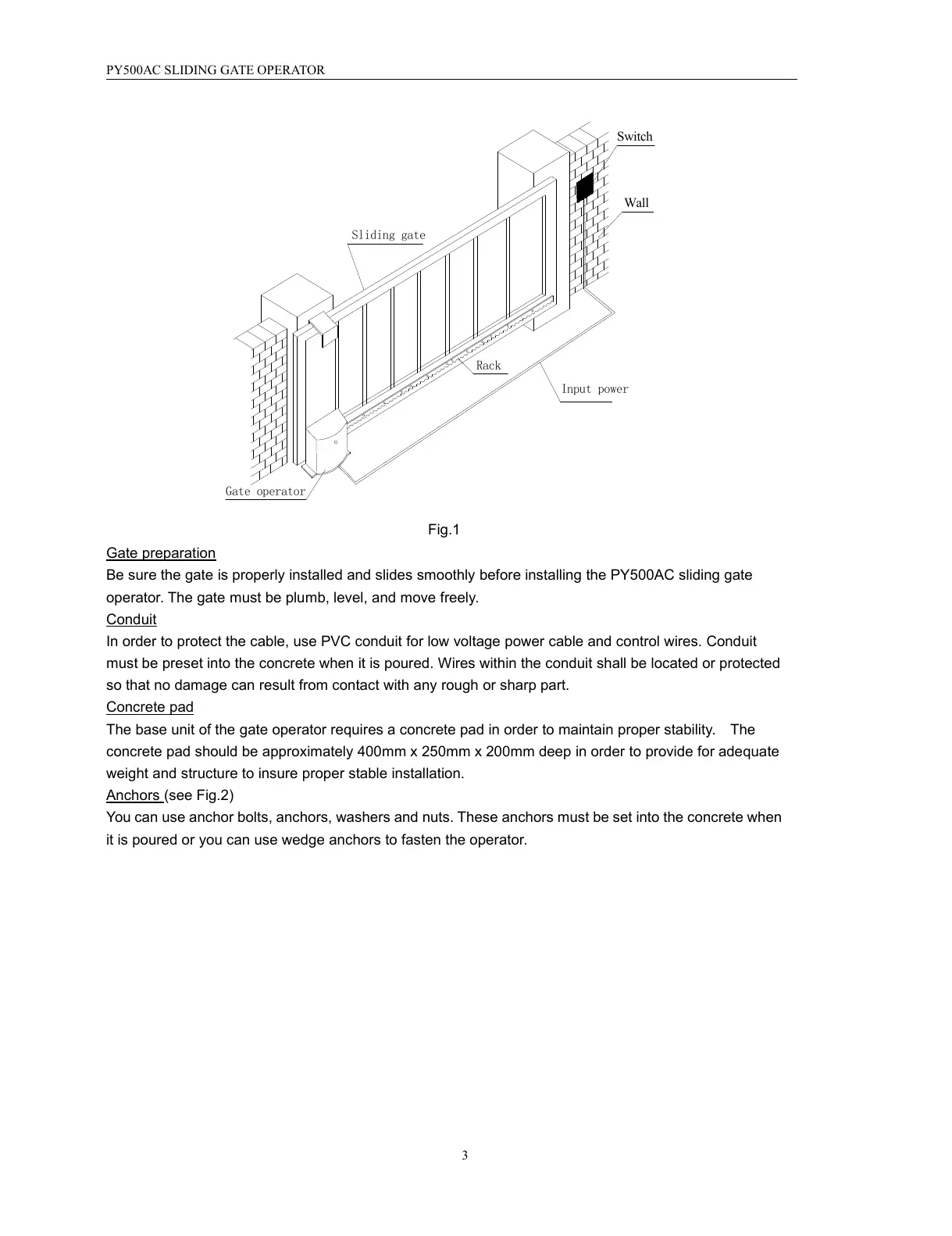 Be sure the gate is properly installed and slides smoothly before installing the PY500AC sliding gate