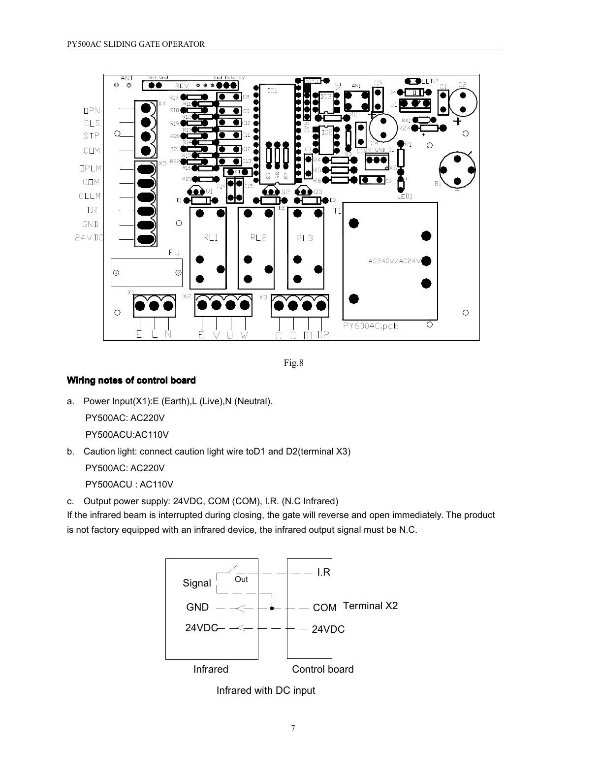 c. Output power supply: 24VDC, COM (COM), I.R. (N.C Infrared )