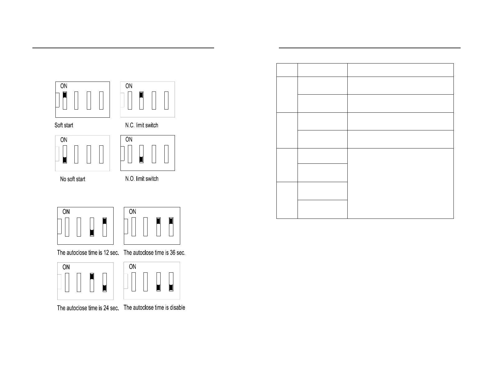 Table 1: DIP switch adjust