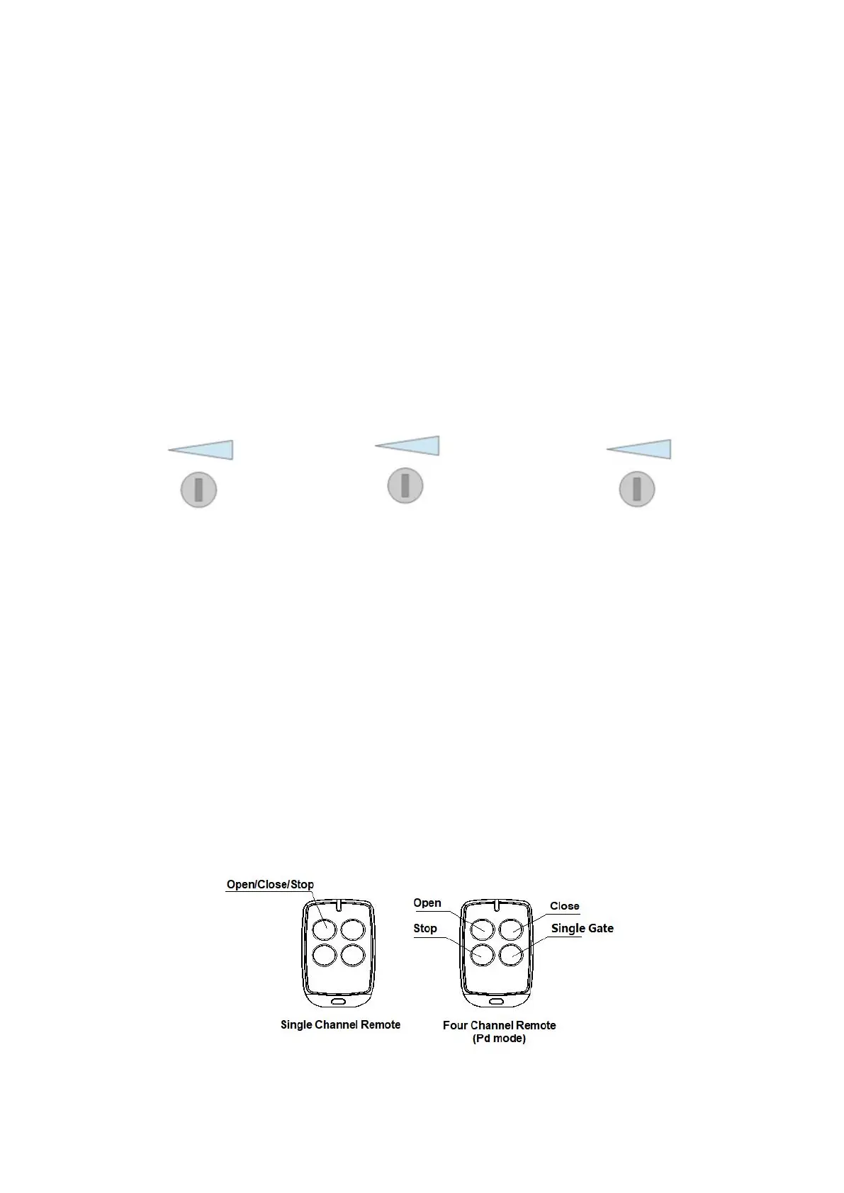 mode -- “PO” -- two swing gates single channel mode; “Pd" -- single gate four channel mode; Press the