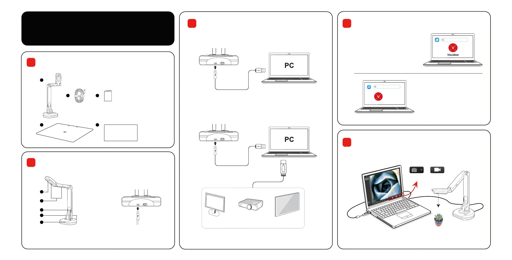 1. Connect the USB cable to the PC and Document Camera.