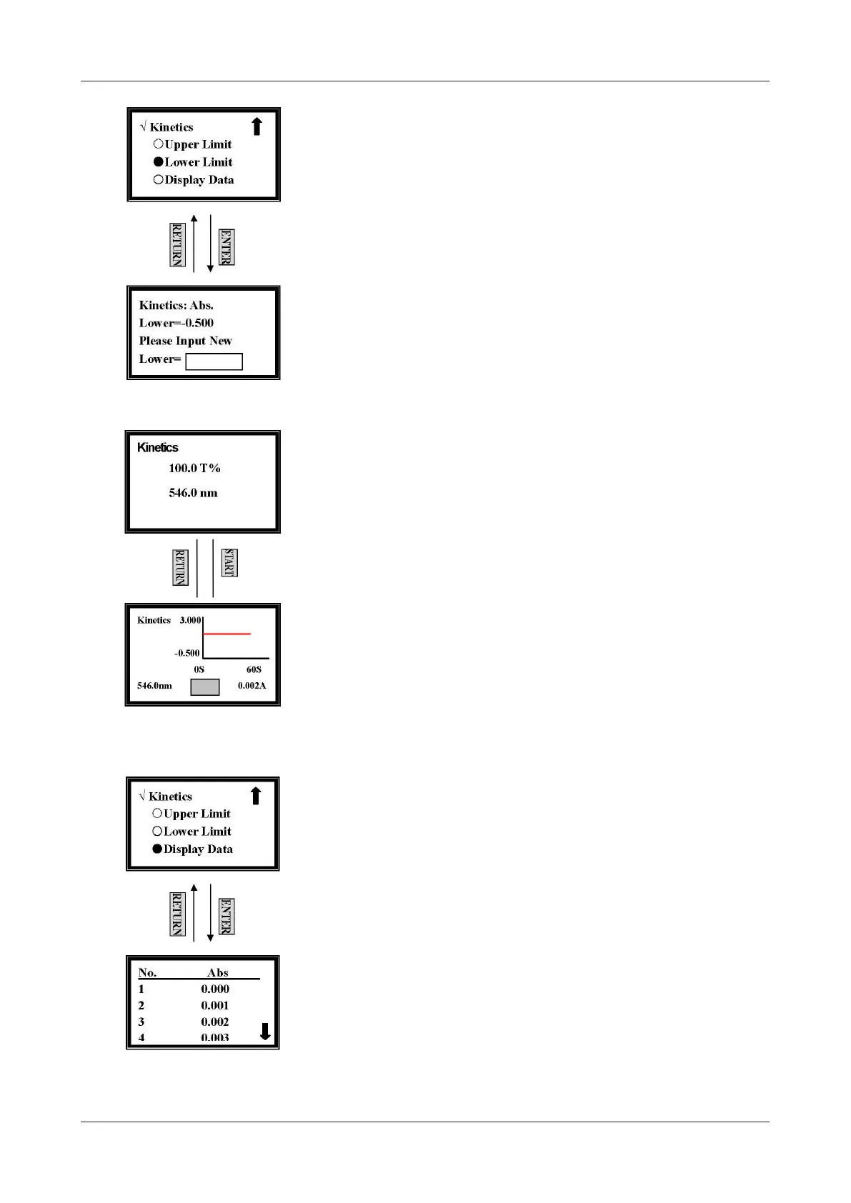 Upper Limit y Lower Limit, pulse [RETURN] para volver a la pantalla de pre-test