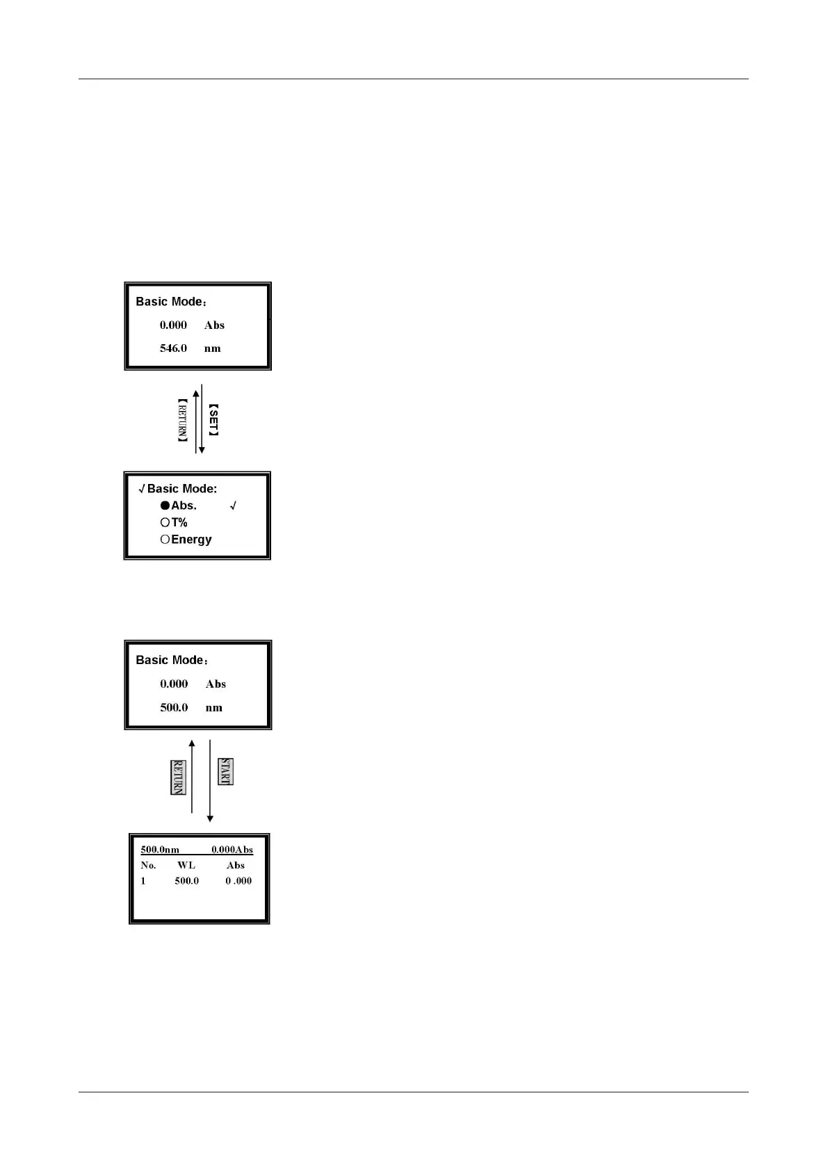 The operation to select T% mode and Energy mode, is the same as Abs test mode.