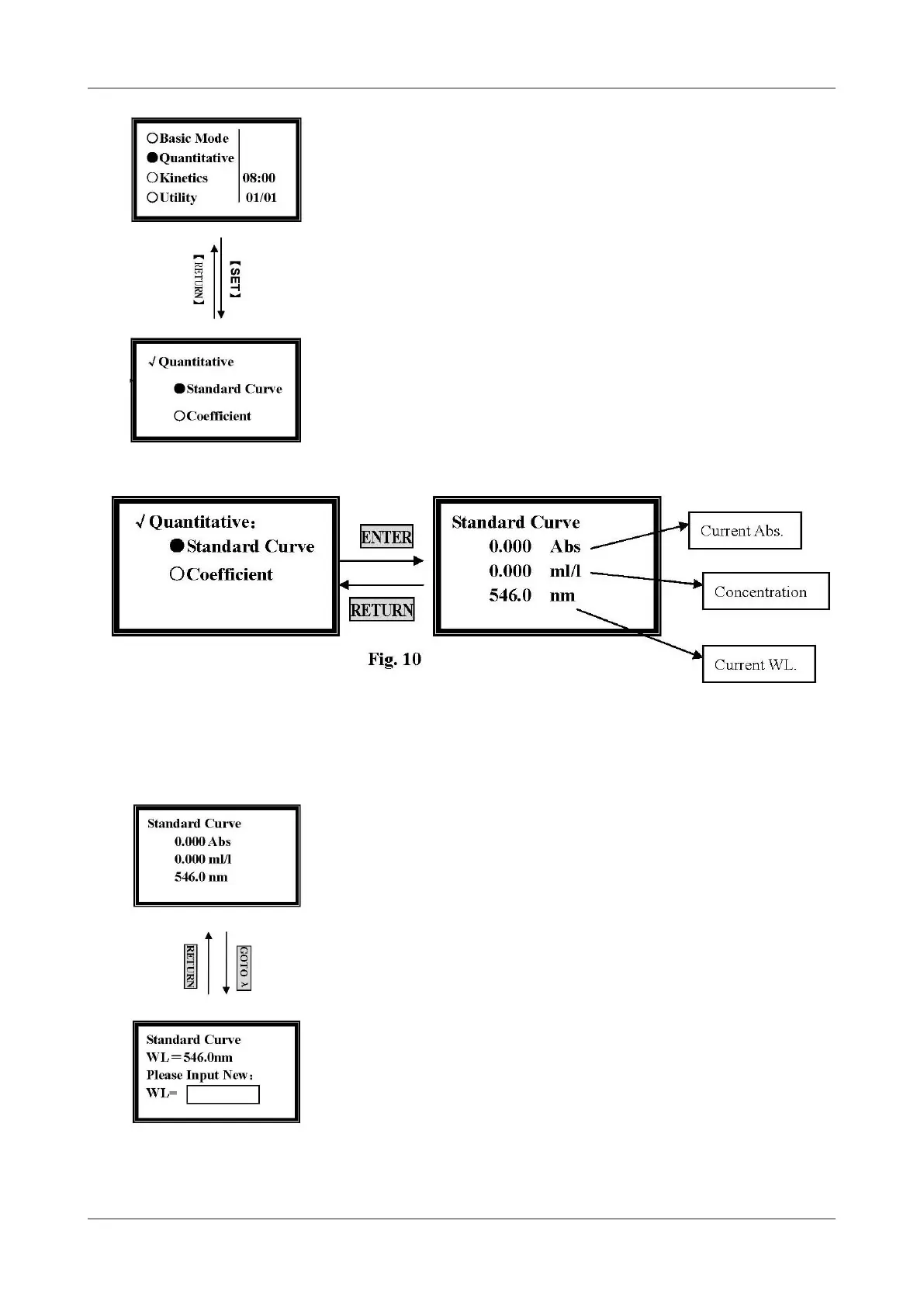 Move the cursor onto the Standard Curve, then press [ENTER], and it will go into