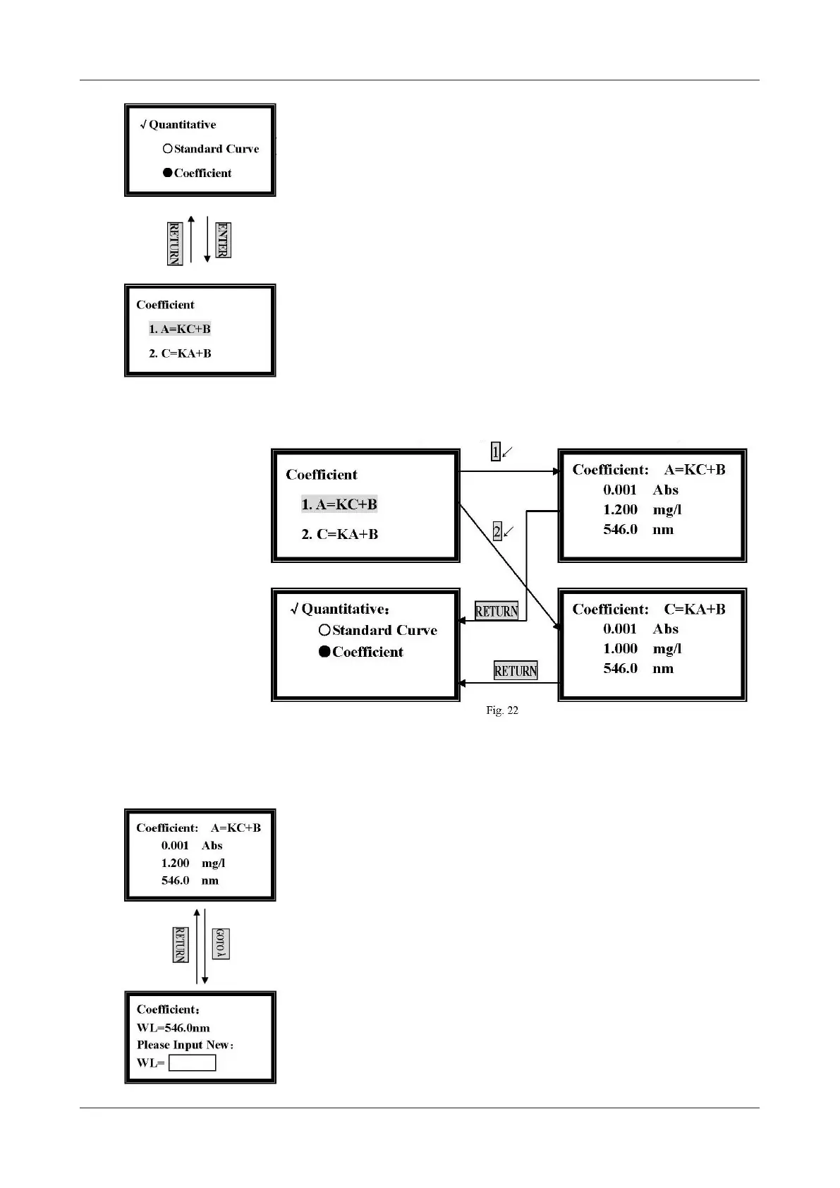 enter the coefcient method pre-testing screen. (Fig.22)